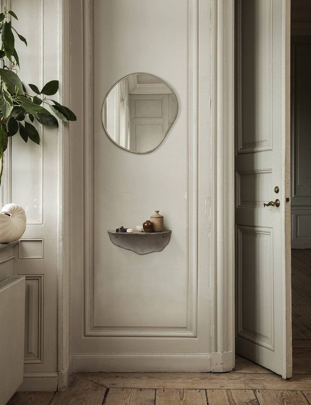 Le design du miroir Pond de Ferm Living explore des formes organiques basées sur le miroir mural classique.