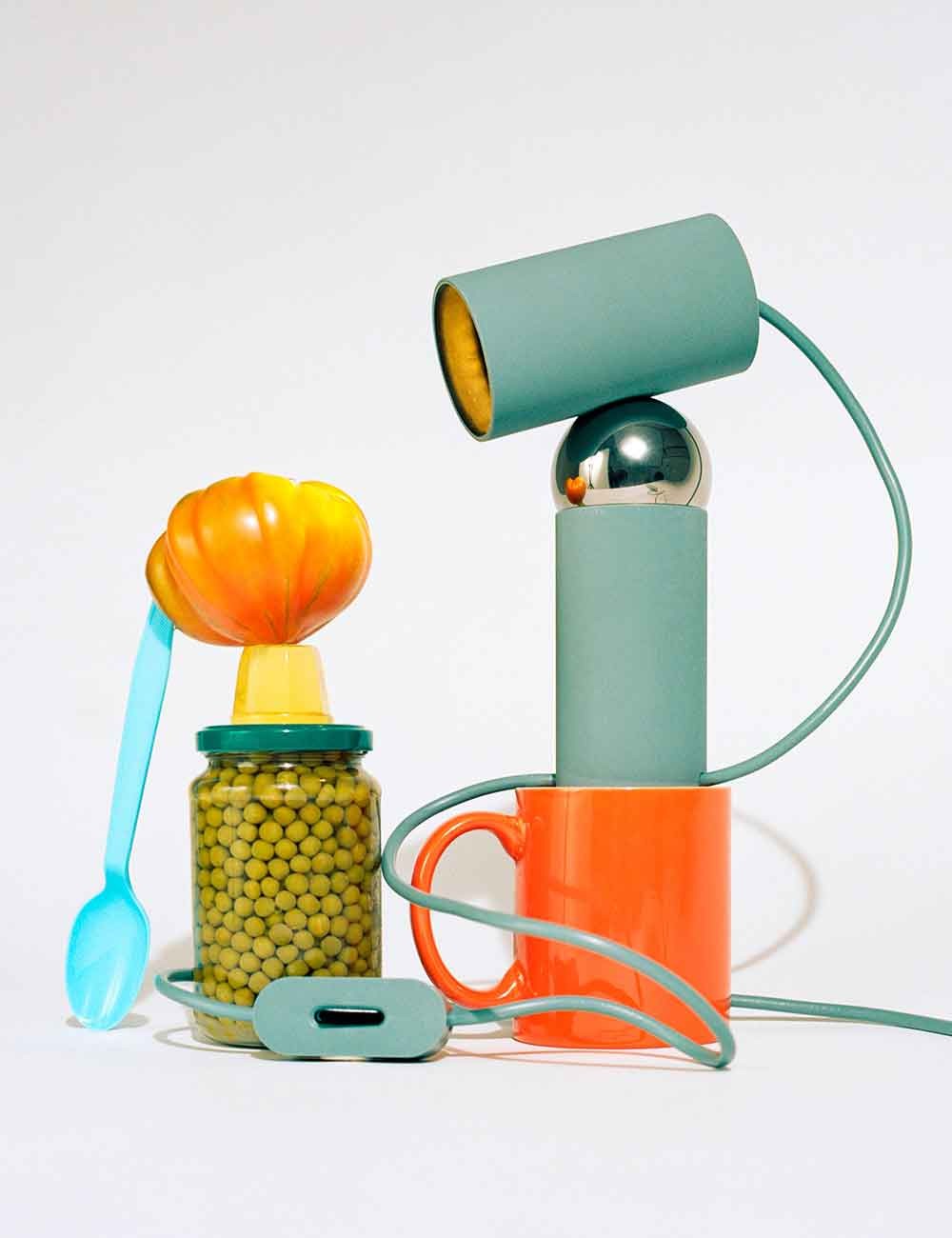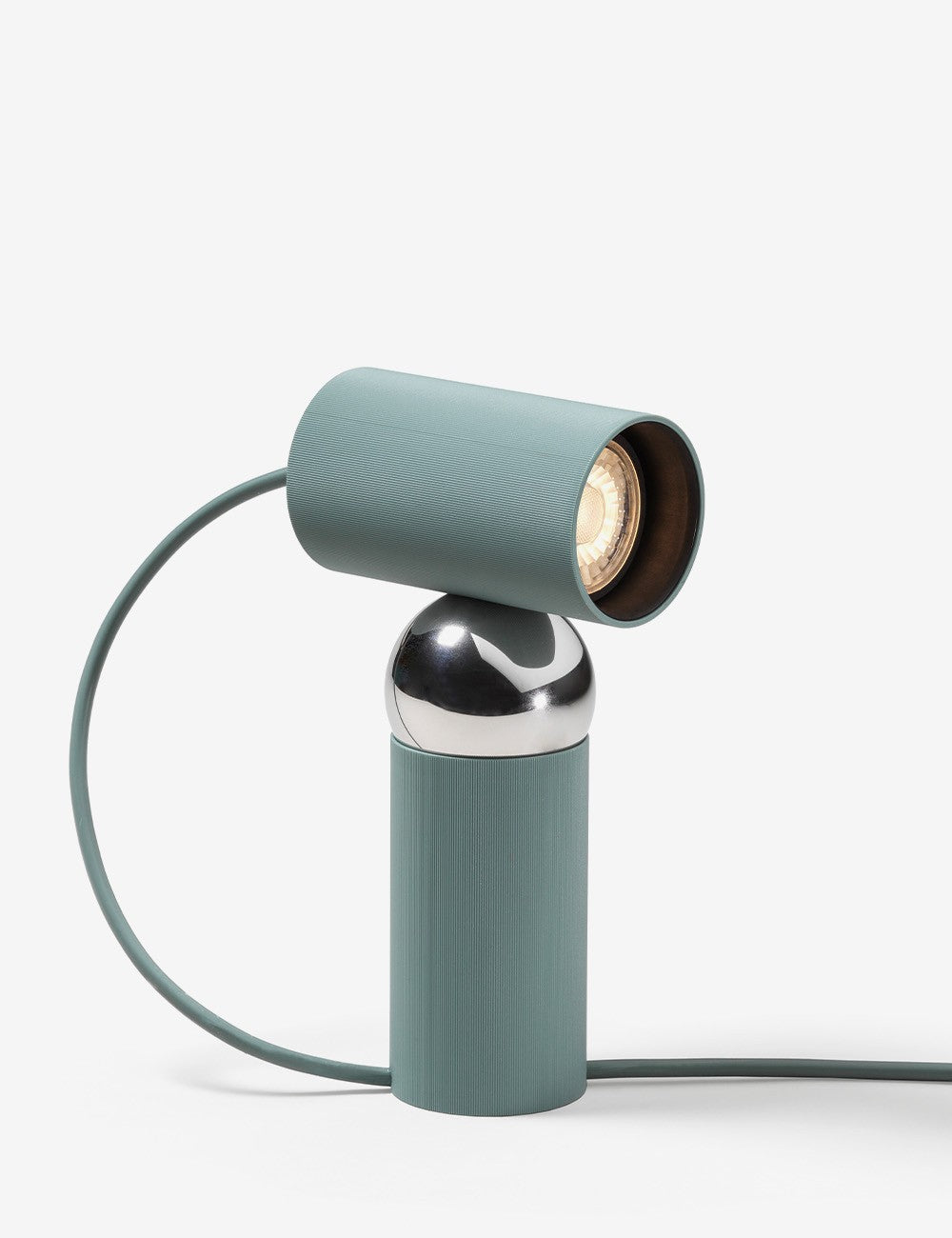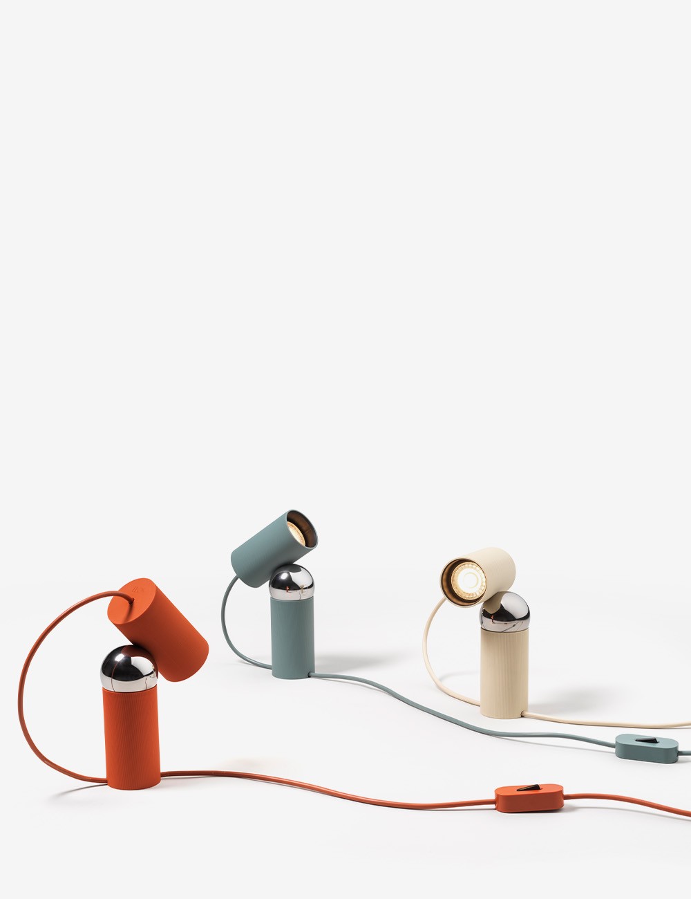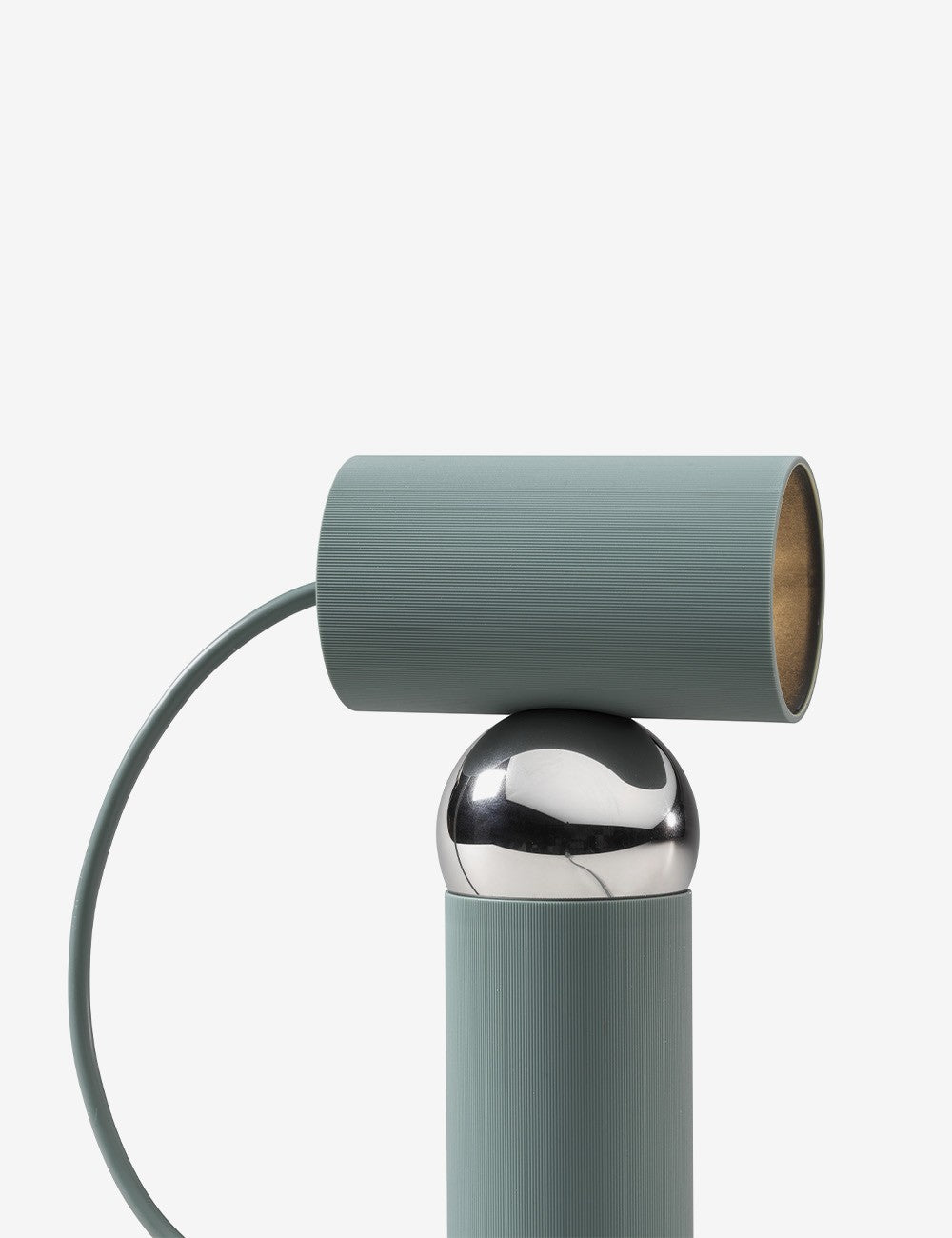 Le Bilboquet est composé de deux cylindres reliés par une sphère magnétique qui fait office d'articulation et permet au cylindre supérieur de tourner, dirigeant la source lumineuse vers la position souhaitée.
