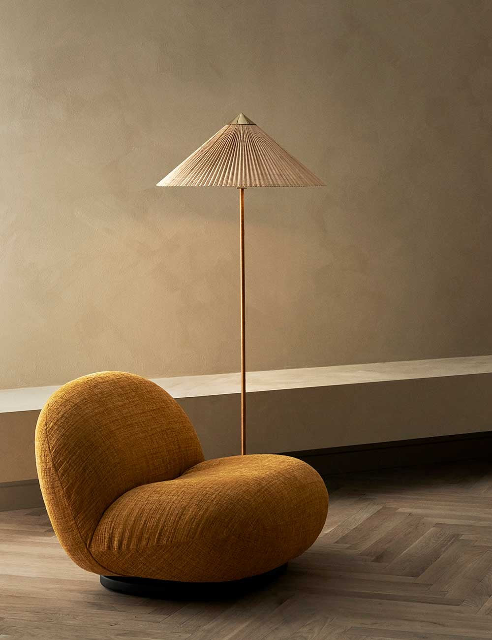 Le lampadaire 9602, également connu sous le nom de « chapeau chinois », a été conçu par Paavo Tynell en 1935 pour l'hôtel Aulanko.