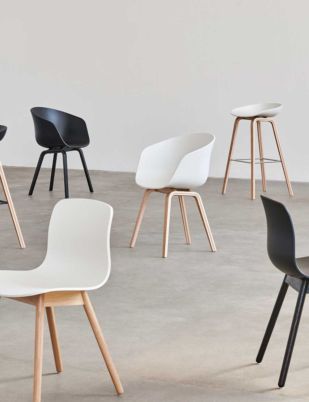 Avec la collection About A, Hee Welling souhaitait atteindre un niveau supérieur en matière d'alliance entre forme, fonctionnalité, confort, détails et esthétique. L'idée était de développer une chaise qui s'intègre aussi bien autour d'une table à manger qu'une table de conférence, qu'au restaurant, au café ou au bureau. Grâce à leur design simple et épuré, ces chaises s'intègrent à de nombreux types de mobilier et d'intérieurs.