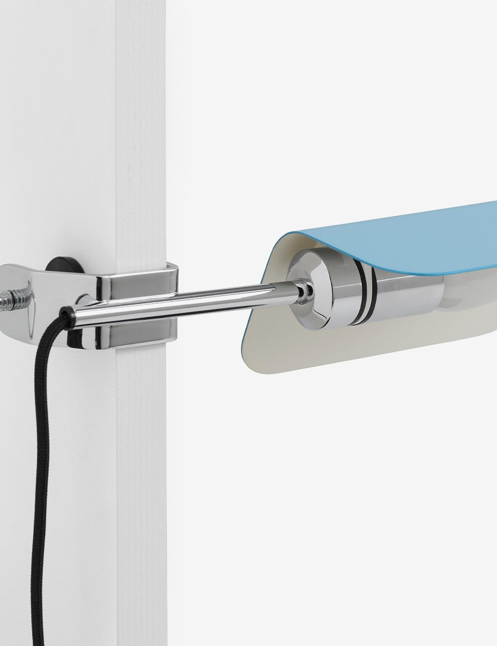 Le design Apex présente un abat-jour en acier plié avec une silhouette pointue, qui inspire le nom de la lampe et offre un contraste graphique avec les bases chromées.