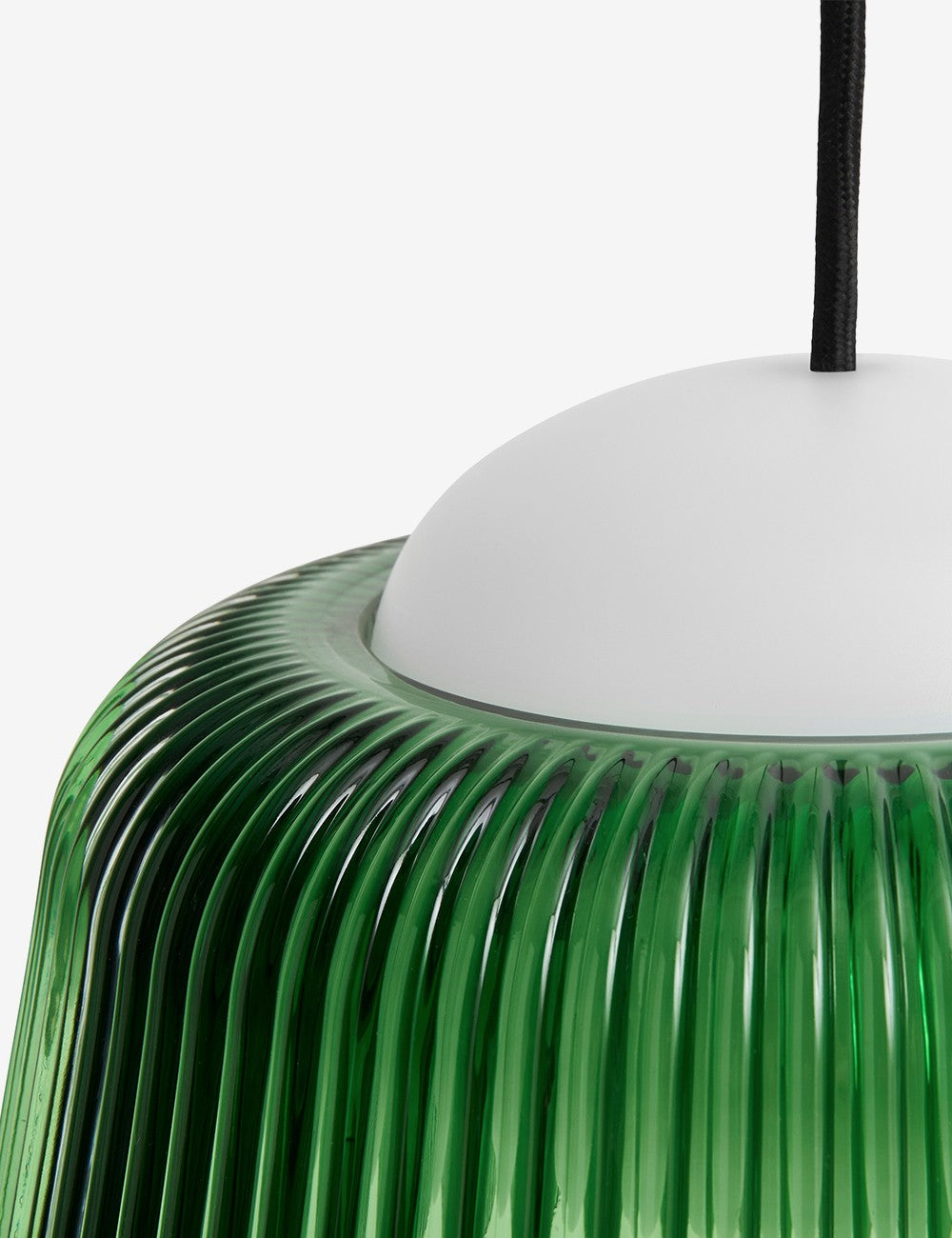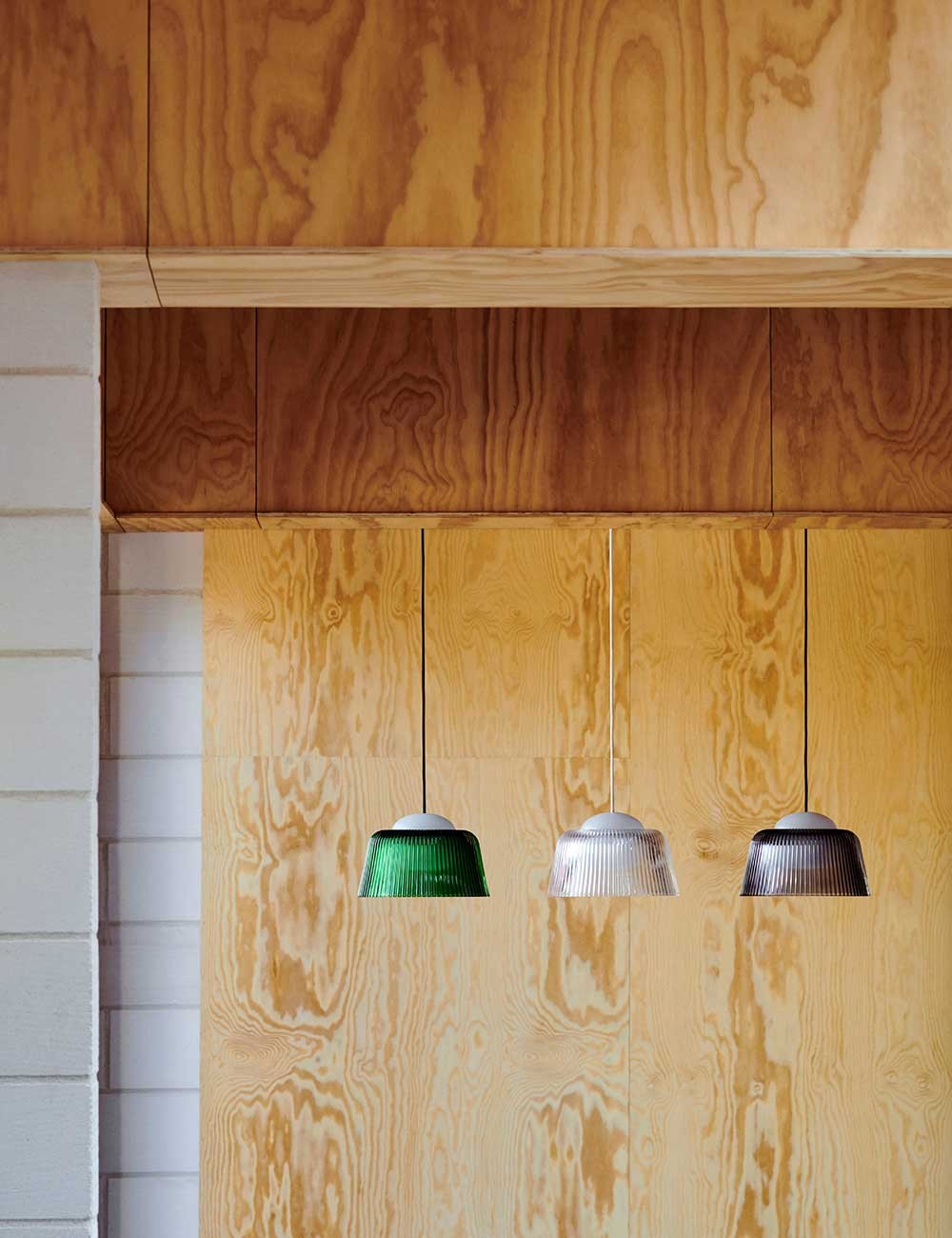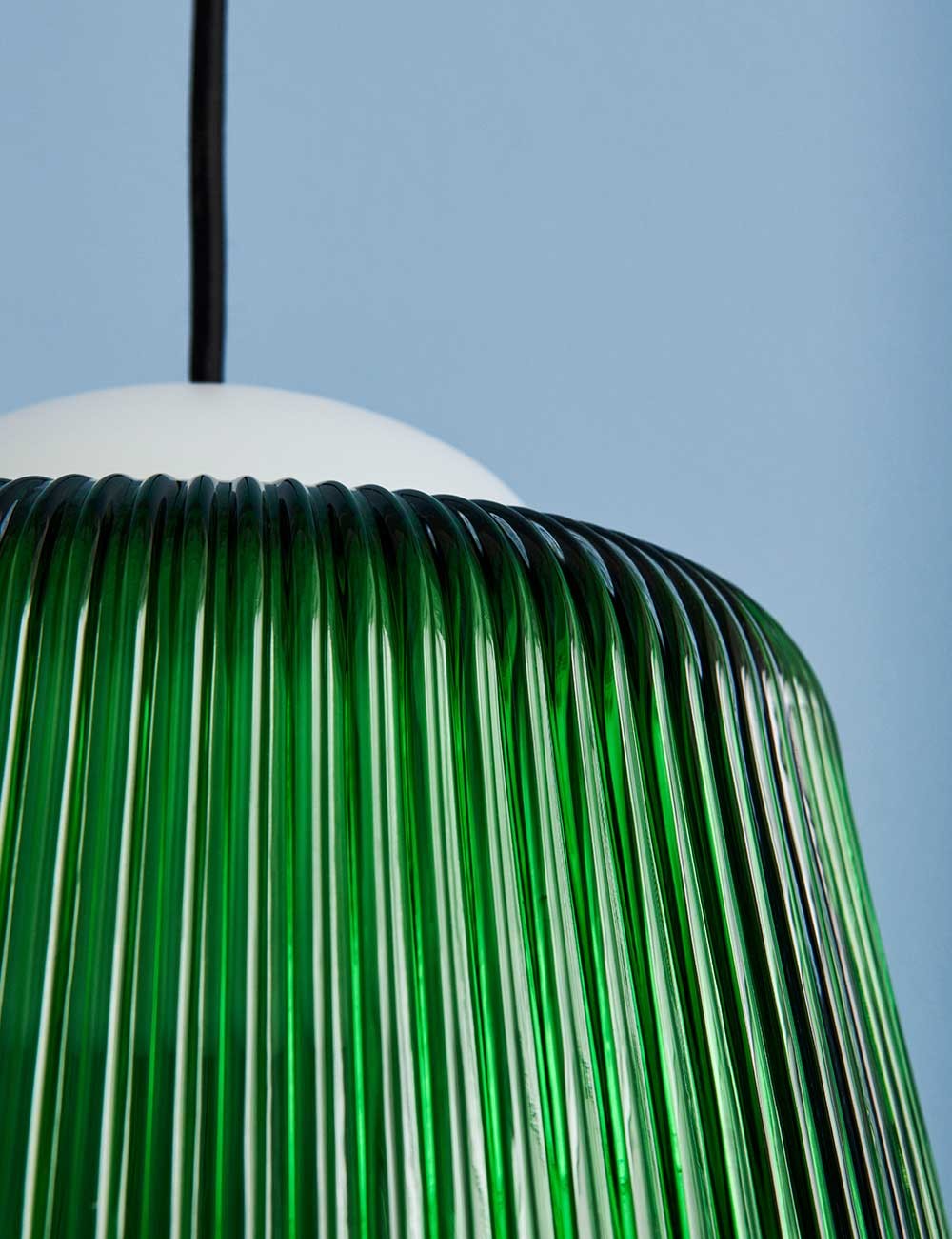 La sphère intérieure de Brim dissimule les ampoules, qui sont entourées d'un abat-jour en verre cannelé distinctif qui améliore la diffusion de la lumière.