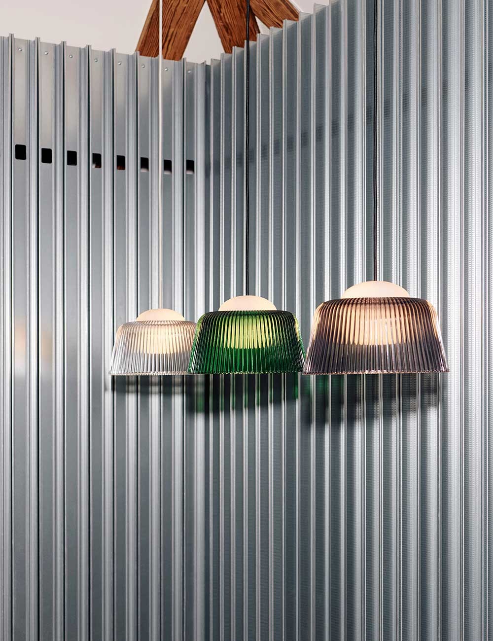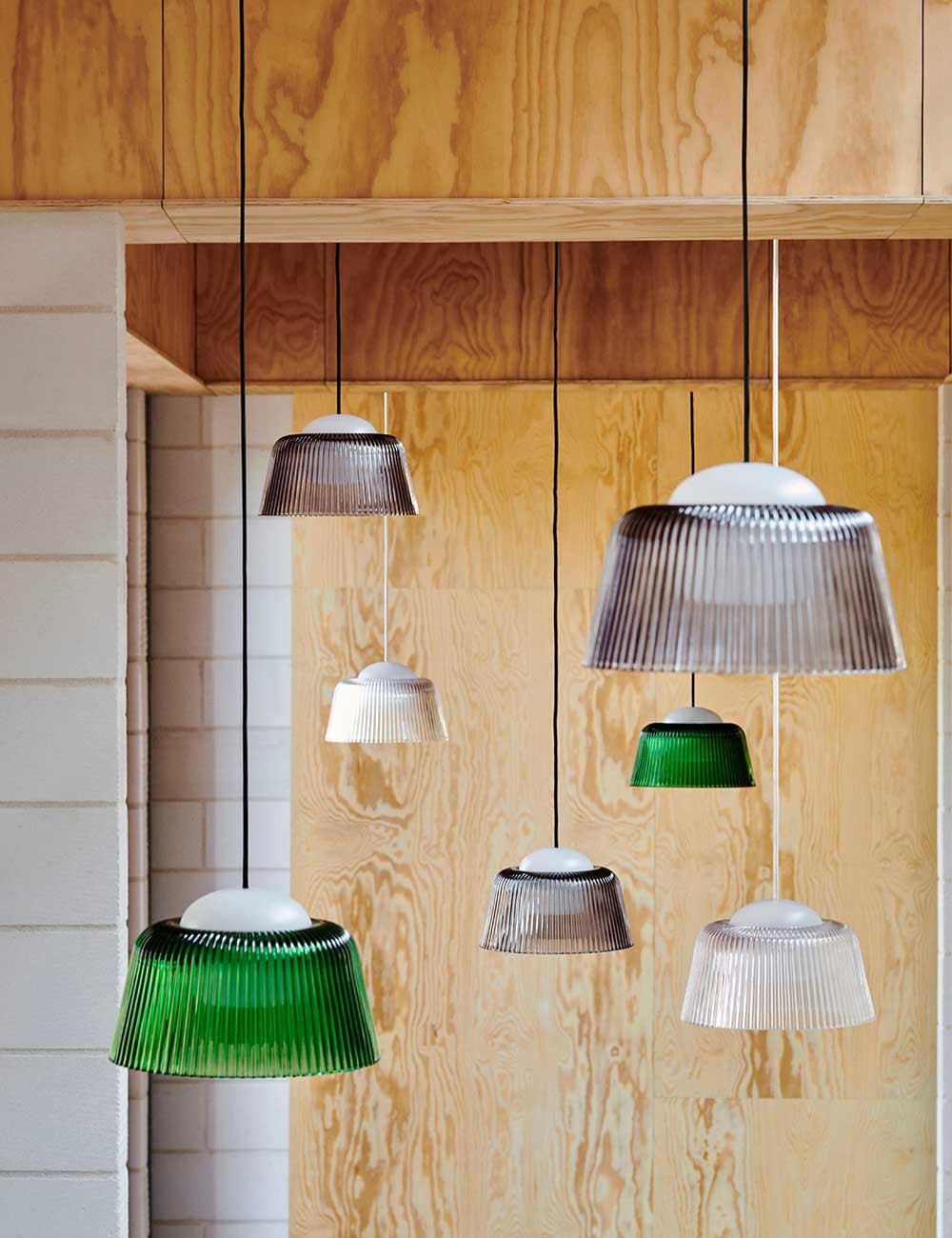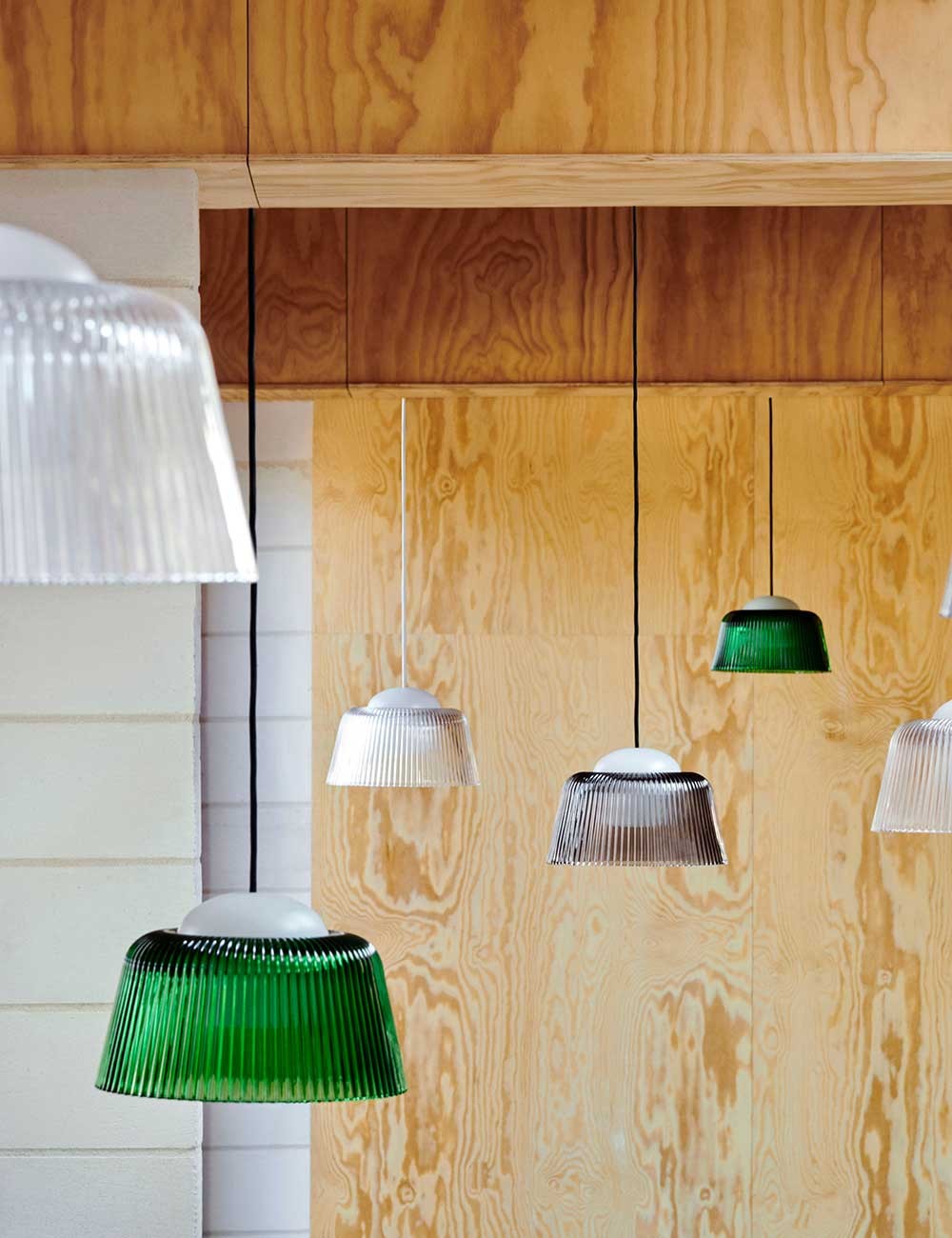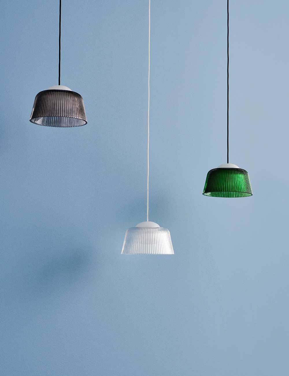 Brim, de Rui Pereira et Ryosuke Fukusada pour HAY, réinvente le plafonnier en cristal classique avec un design contemporain mais familier.