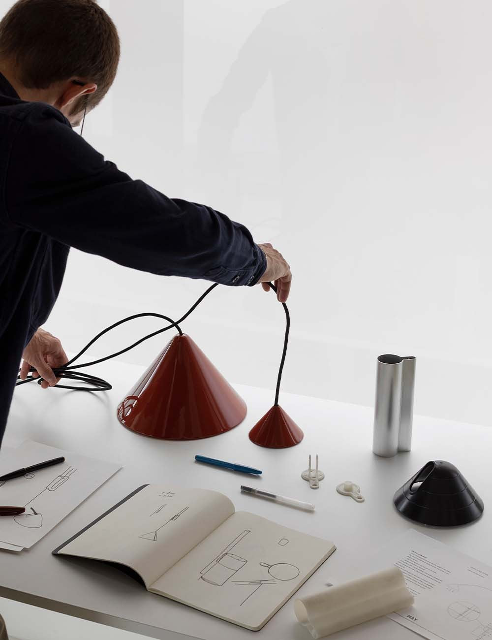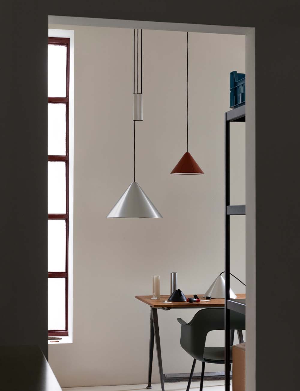La suspension Compass, conçue par Julien Renault pour HAY, propose une réinterprétation moderne et élégante de la suspension classique.
