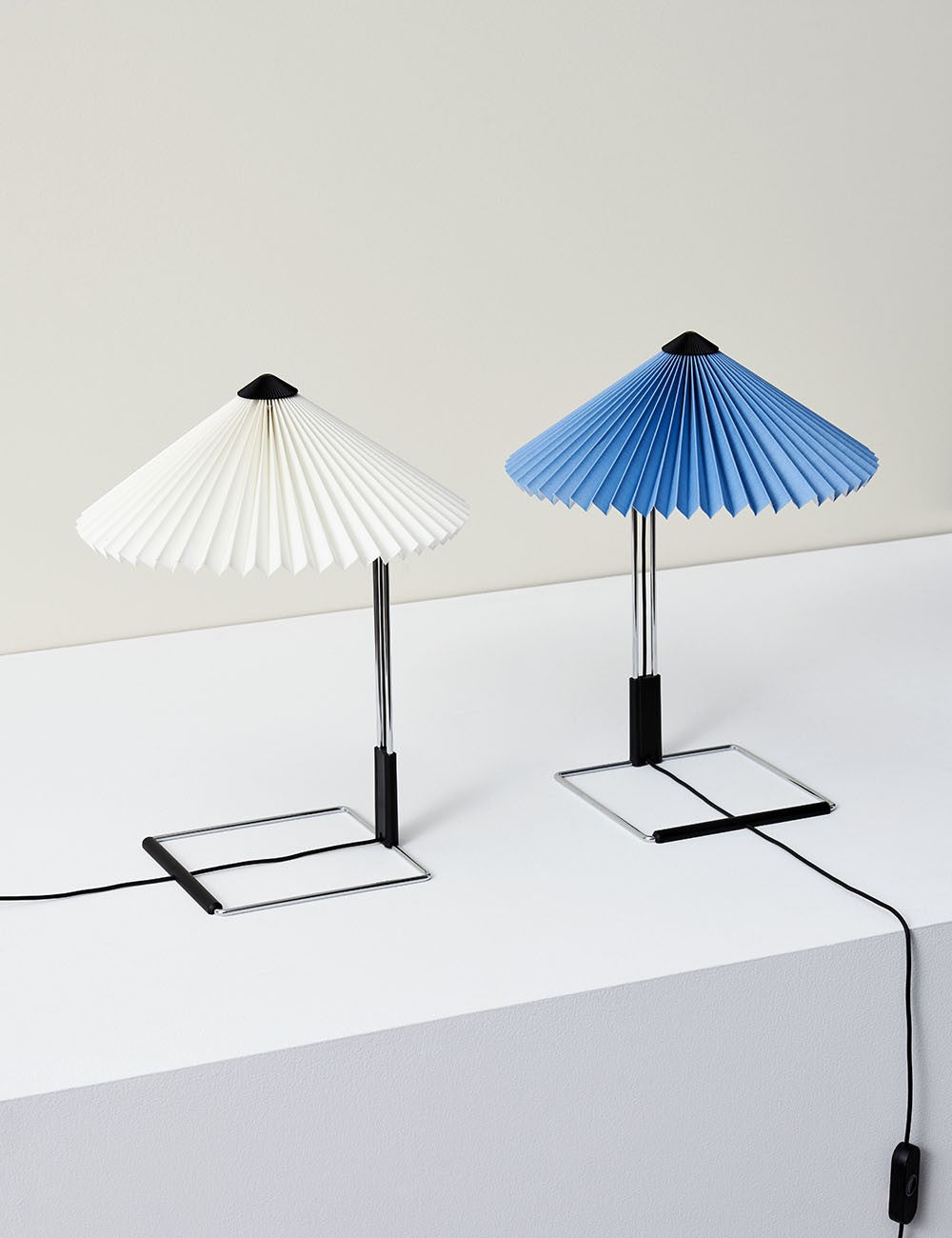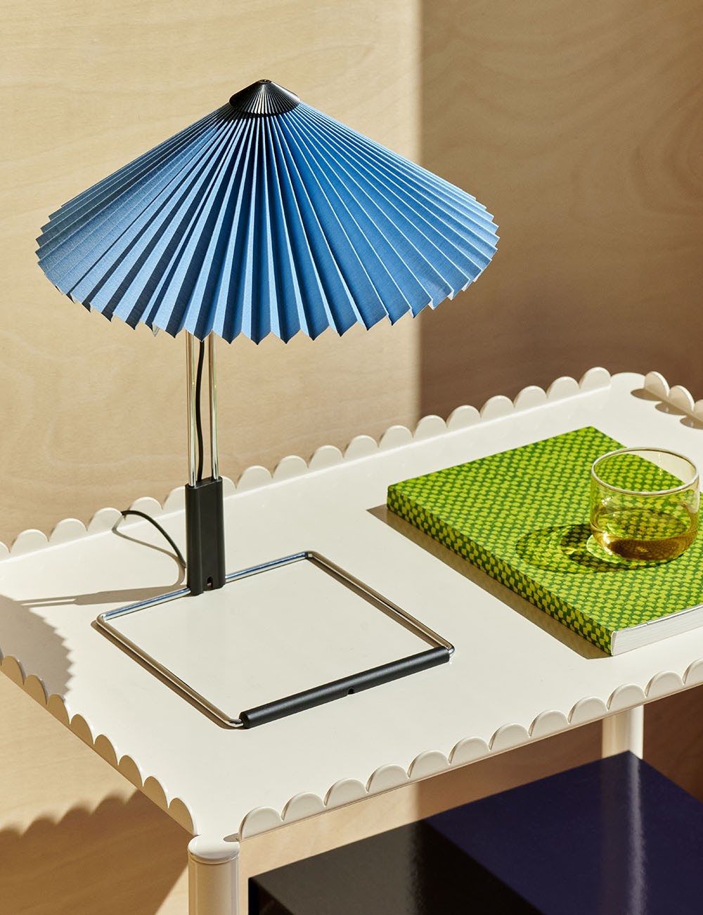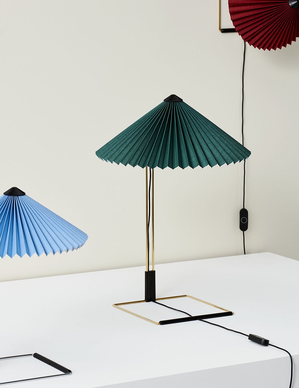 Matin est une lampe de table conçue par Inga Sempé pour HAY, réalisée en laiton avec un abat-jour en coton. Son design délicat associe une base simple et contemporaine à un abat-jour plissé aux influences orientales, créant ainsi une lampe au design sophistiqué et à la personnalité affirmée.