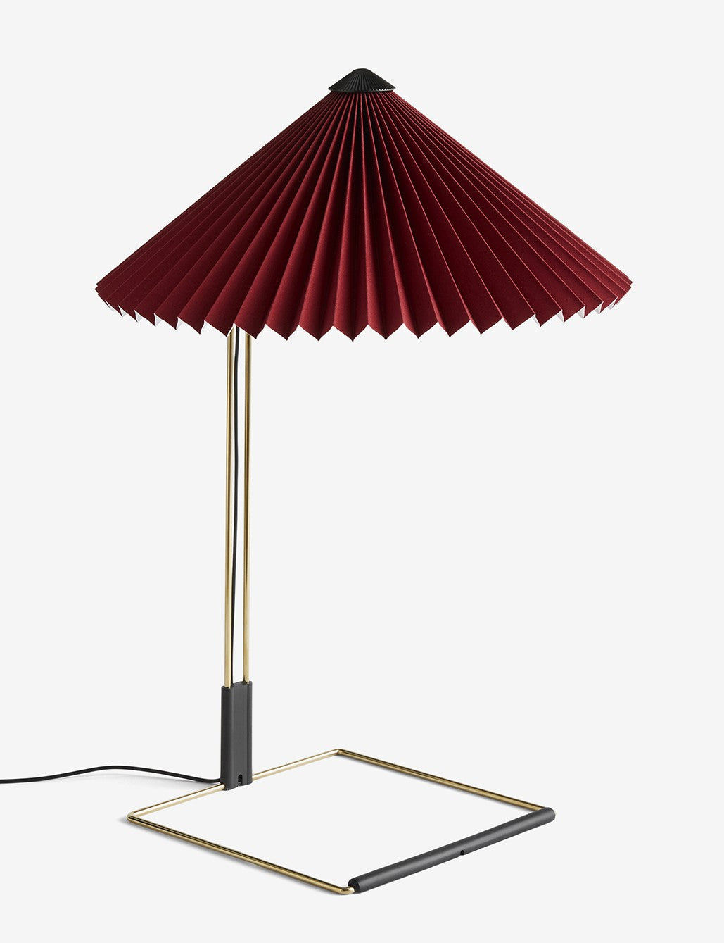 Matin est une lampe de table conçue par Inga Sempé pour HAY, réalisée en laiton avec un abat-jour en coton. Son design délicat associe une base simple et contemporaine à un abat-jour plissé aux influences orientales, créant ainsi une lampe au design sophistiqué et à la personnalité affirmée.