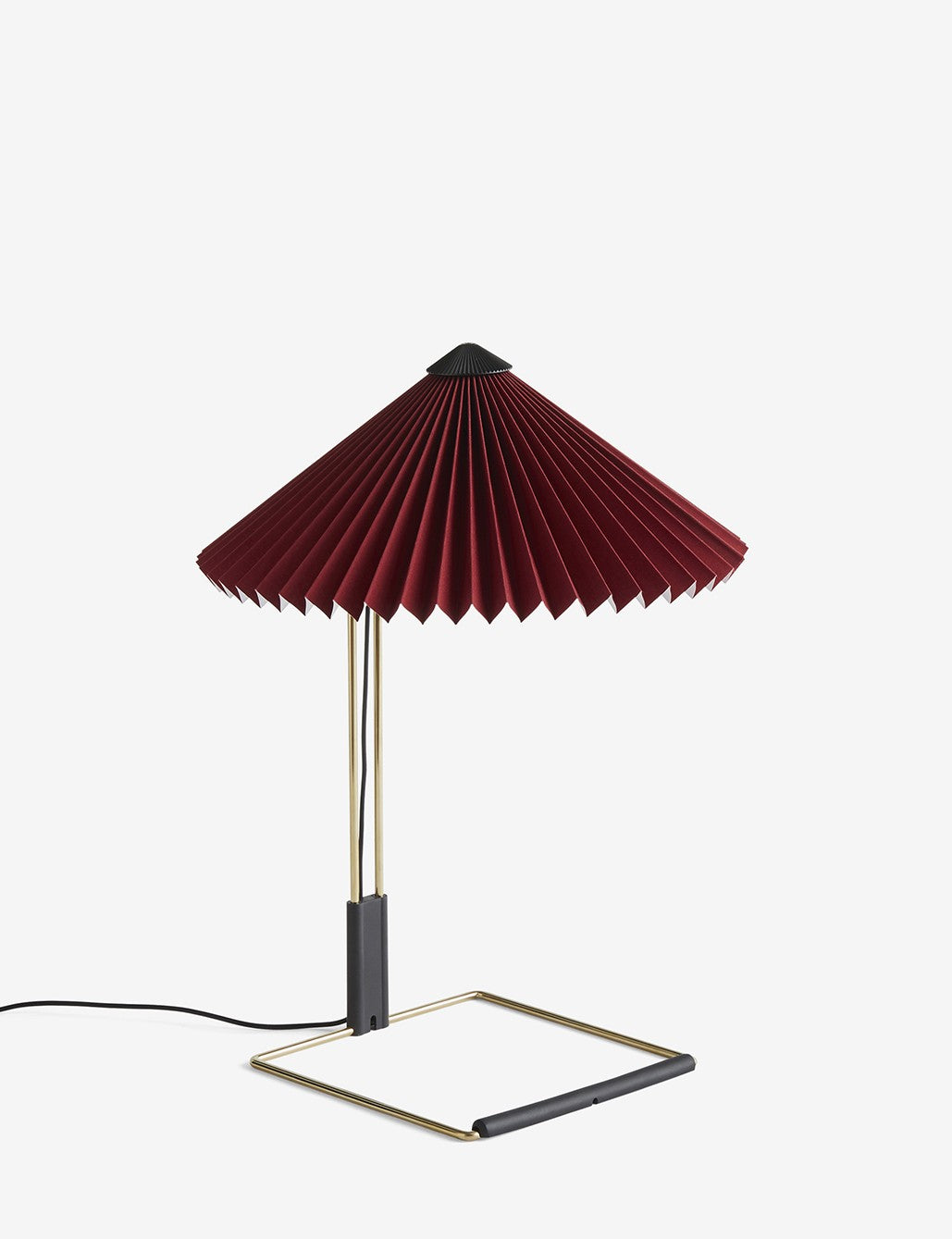 Matin est une lampe de table conçue par Inga Sempé pour HAY, réalisée en laiton avec un abat-jour en coton. Son design délicat associe une base simple et contemporaine à un abat-jour plissé aux influences orientales, créant ainsi une lampe au design sophistiqué et à la personnalité affirmée.