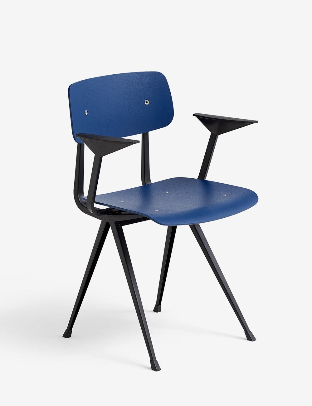 La chaise Result est dotée d'un piètement fin en tôle d'acier et d'une assise et d'un dossier en chêne, garantissant une flexibilité, une légèreté et une résistance maximales tout en conservant son design minimaliste. Initialement très appréciée dans les écoles des années 1950, son esthétique épurée et sa durabilité lui permettent d'être utilisée dans de nombreux environnements publics et privés. Disponible dans une variété de finitions de bois et de couleurs de piètement, elle s'harmonise avec la table Pyramid.