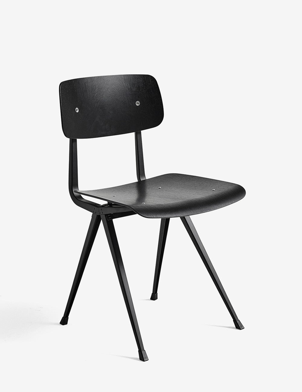 La chaise Result est dotée d'un piètement fin en tôle d'acier et d'une assise et d'un dossier en chêne, garantissant une flexibilité, une légèreté et une résistance maximales tout en conservant son design minimaliste. Initialement très appréciée dans les écoles des années 1950, son esthétique épurée et sa durabilité lui permettent d'être utilisée dans de nombreux environnements publics et privés. Disponible dans une variété de finitions de bois et de couleurs de piètement, elle s'harmonise avec la table Pyramid.