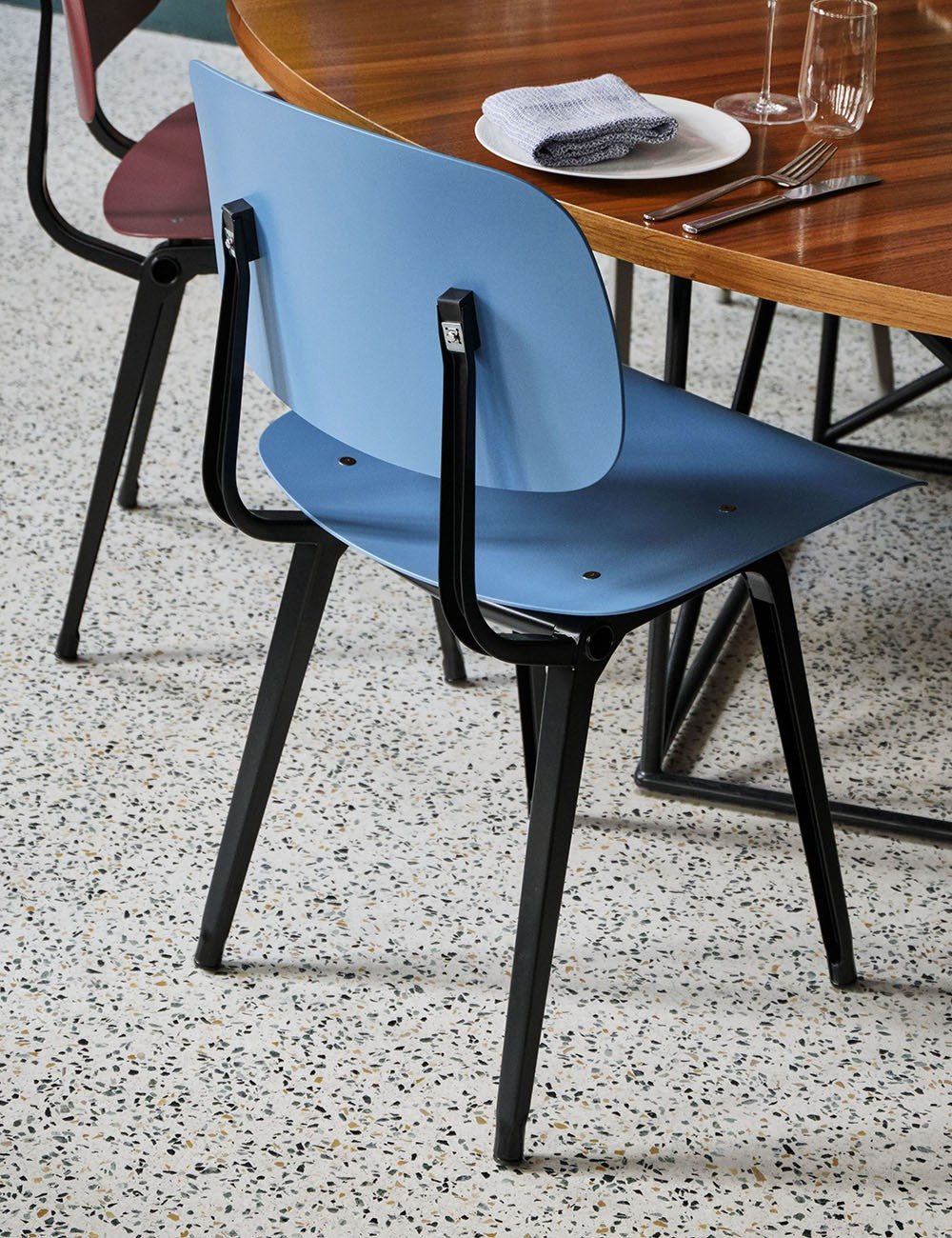 Dans cette nouvelle version de Revolt, l'assise et le dossier sont fabriqués à partir d'un mélange de matériaux recyclés post-consommation et d'ABS.