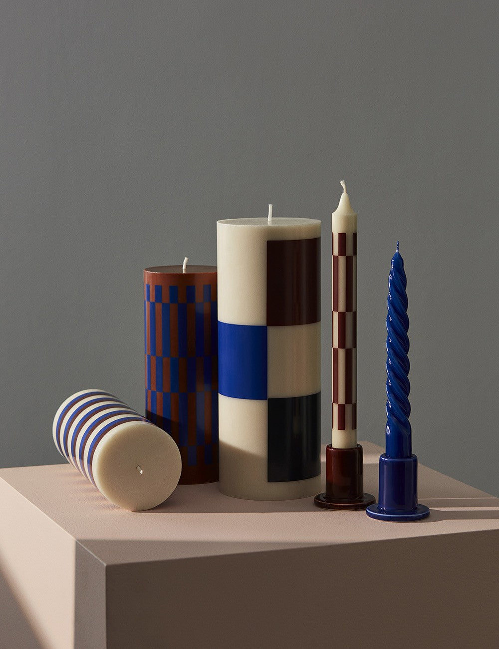 Fabriqué en argile cuite avec un émail semi-transparent, le bougeoir Tube fusionne un design tubulaire minimaliste avec une palette de couleurs pastel.
