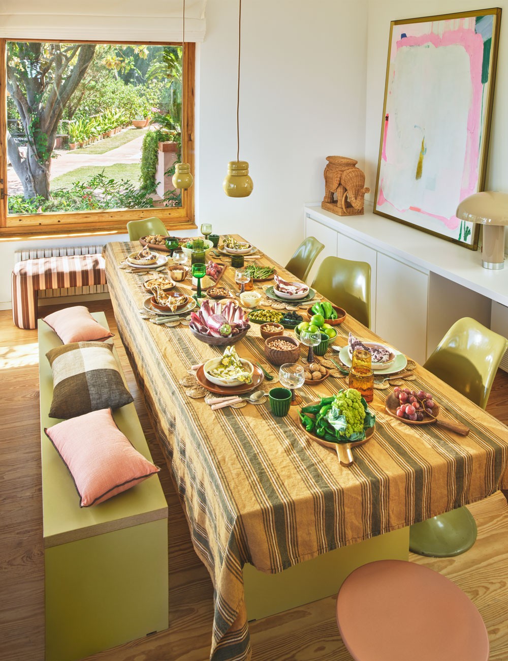 La série Dining de hkliving est composée d'une série de tables et de bancs aux lignes minimalistes.