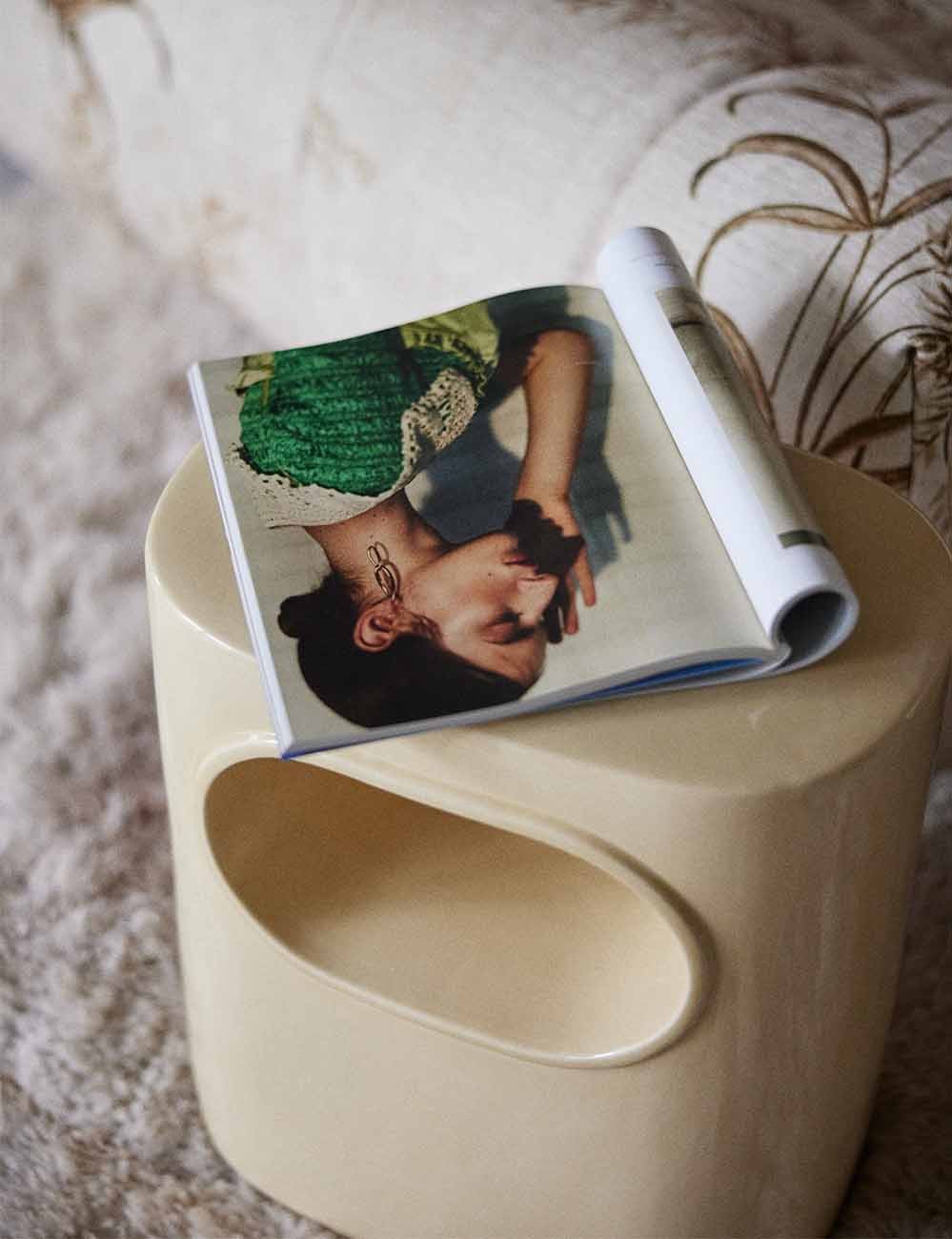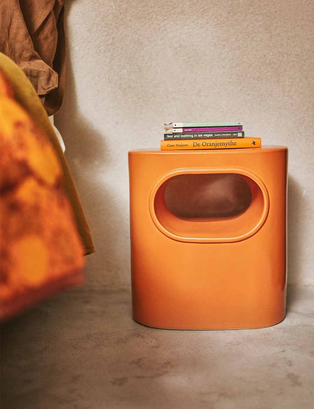 Cette table d'appoint multifonctionnelle, disponible en crème classique et orange vif, est une célébration de la forme et de la fonction qui capture parfaitement l'essence de l'esthétique rétro.