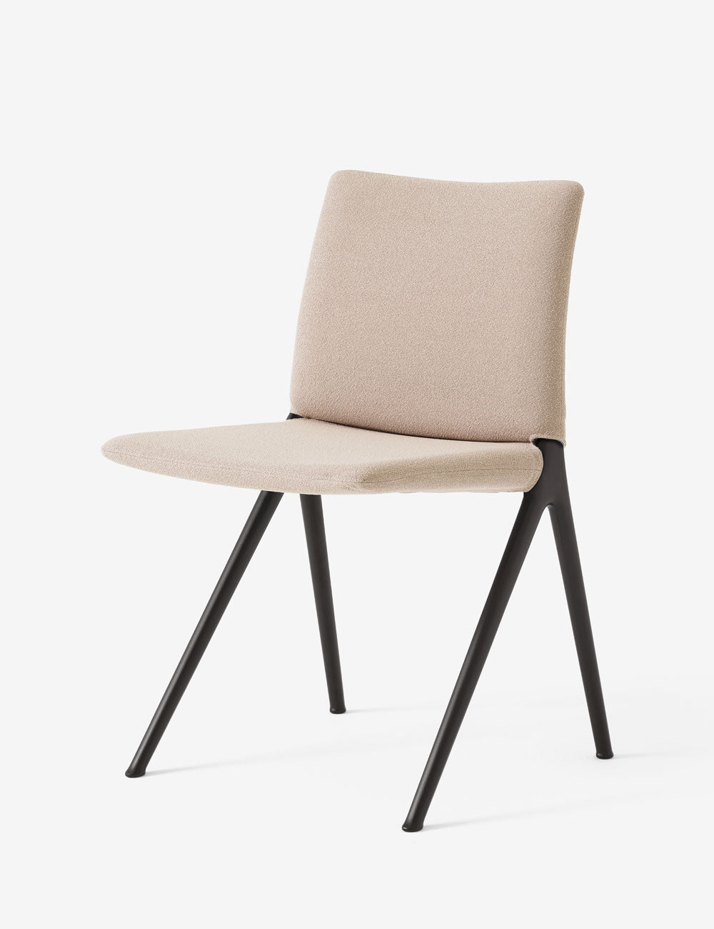 Kape, la deuxième création d'Industrial Facility pour &Tradition, est une chaise aux lignes graphiques et à l'impact visuel saisissant qui redéfinit la fonctionnalité grâce à son système de rembourrage interchangeable innovant.