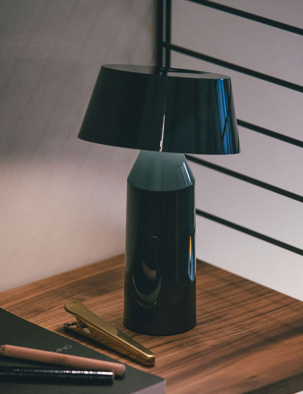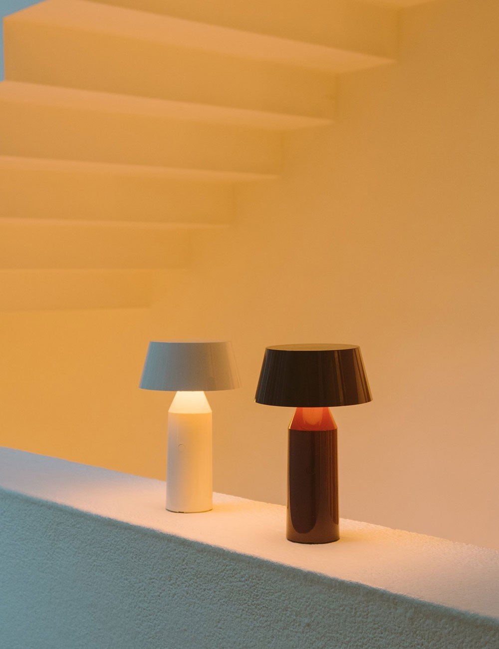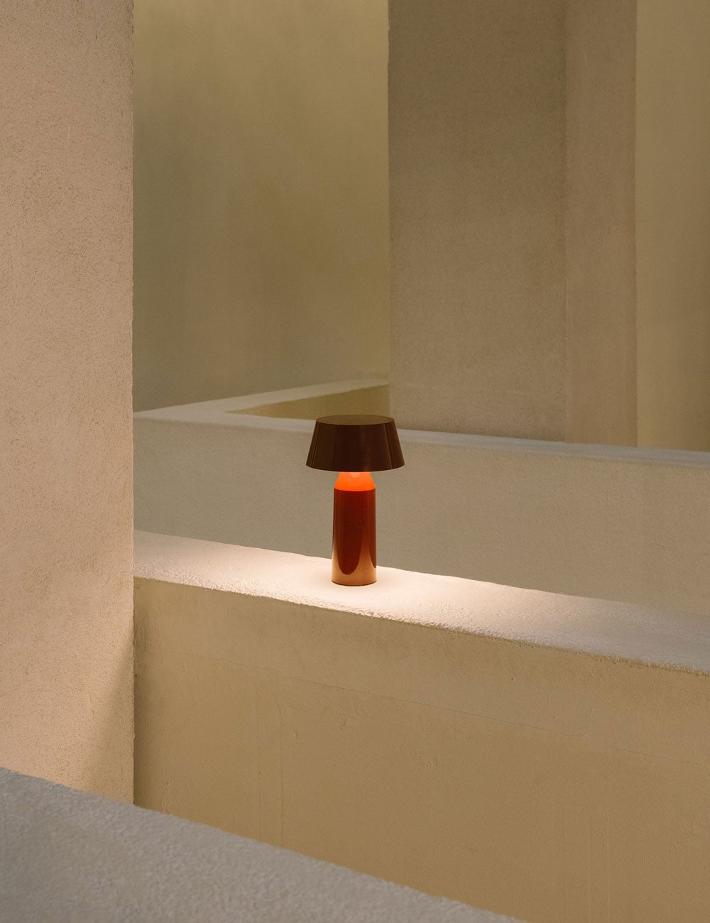 Cette lampe colorée, économe en énergie, légère et portable projette une lumière intime qui apporte de la chaleur à un espace personnel.