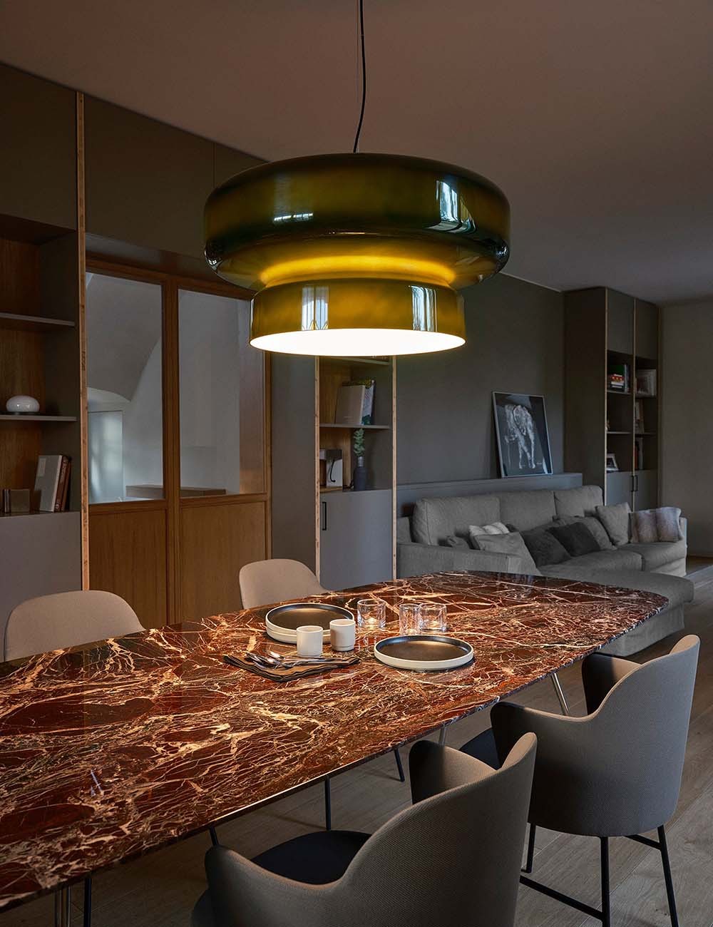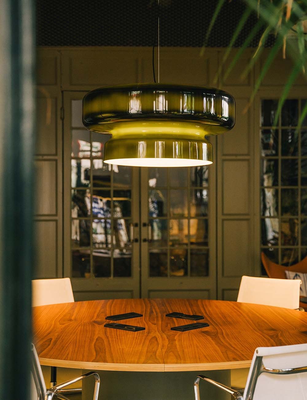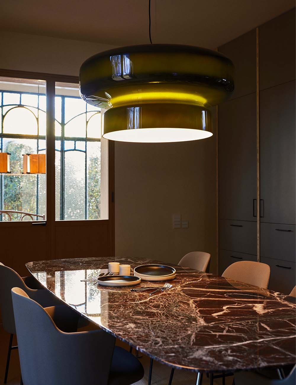 Le moule qui façonne Bohemia est divisé en deux parties précisément pour que ce design très particulier, qui mélange des formes concaves et convexes, puisse être extrait, et c'est à ce moment qu'une ligne de séparation apparaît inévitablement dans la lampe, inhérente à son processus de production.