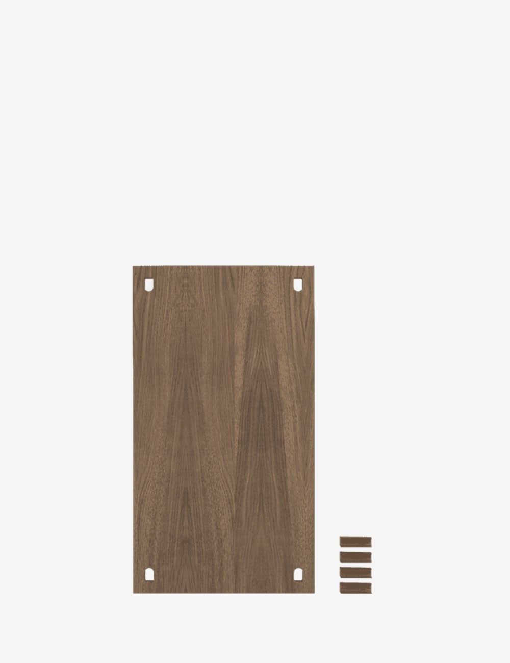 Chaque étagère ou module est soutenu par la structure métallique grâce à quatre cales en chêne massif.