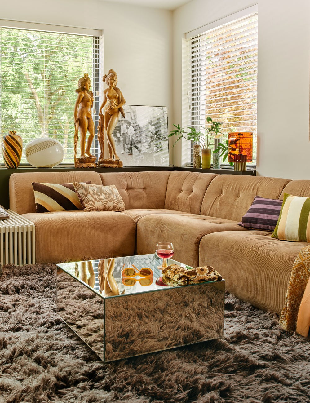 Basse et élégante, cette table présente une surface en miroir qui reflète la lumière et ajoute une sensation d'espace à n'importe quelle pièce.