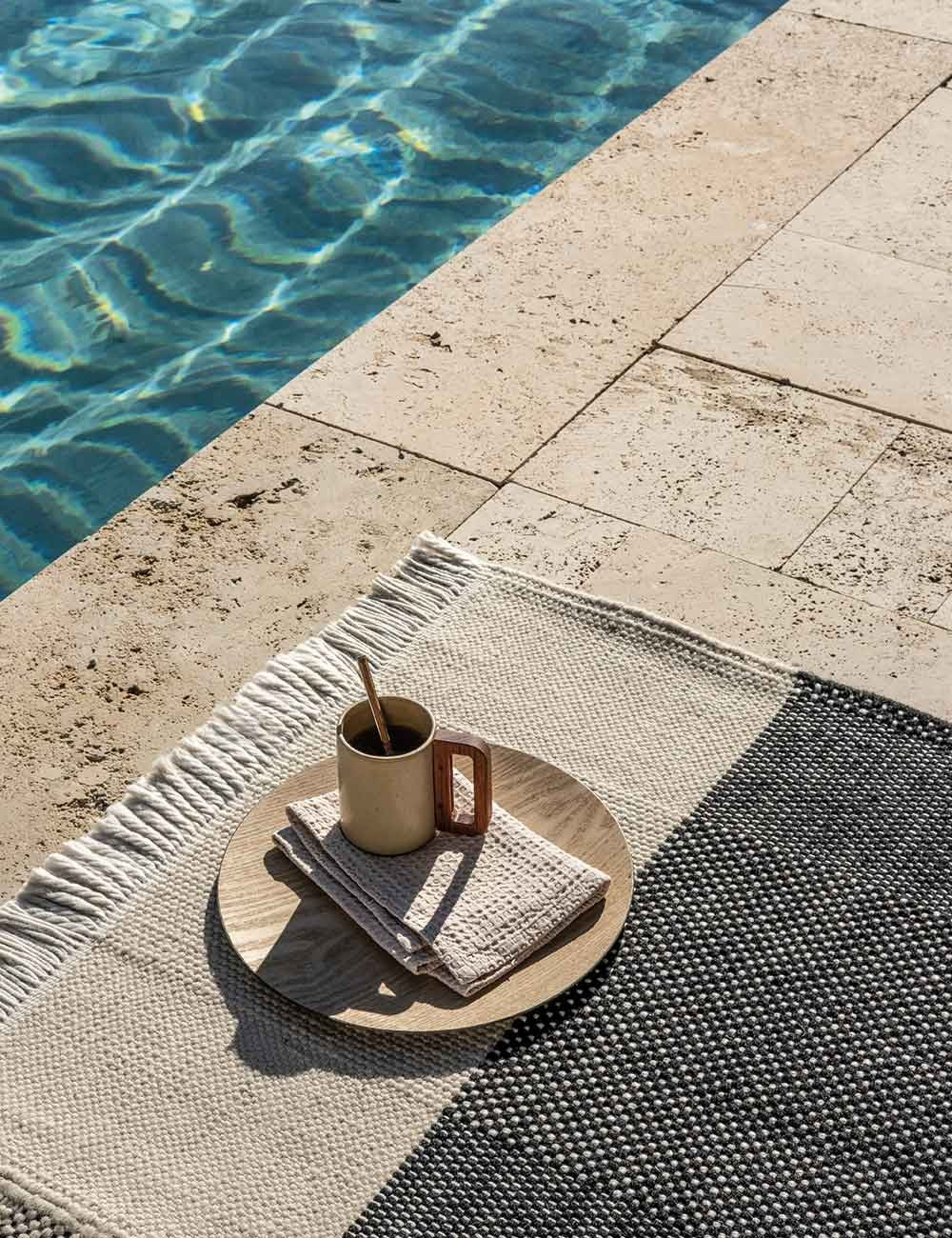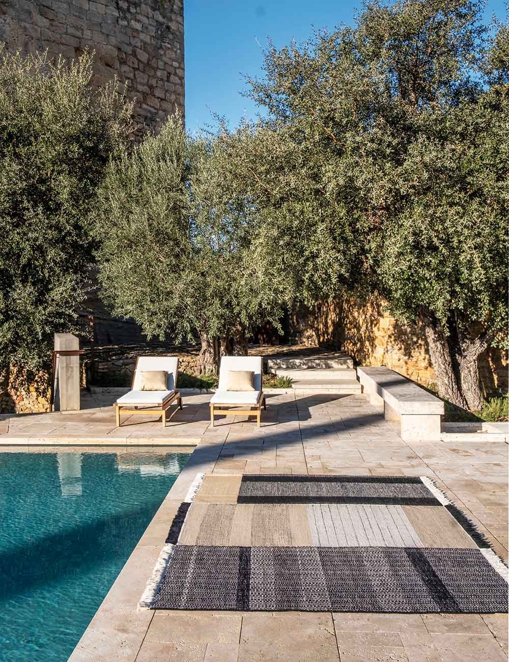 Tres Outdoor transpose la chaleur des espaces intérieurs à l'extérieur. Des espaces où le dénominateur commun est l'absence de murs et de zones délimitées, où le tapis devient l'outil idéal pour définir et créer des environnements extérieurs confortables.