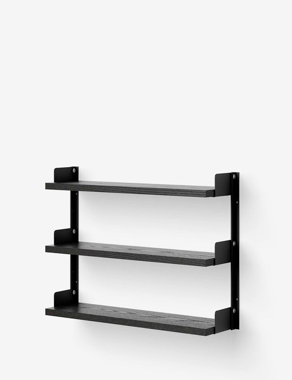 Les profils inclinés des étagères sont soigneusement assemblés avec des vis plates en acier inoxydable, ajoutant un détail honnête mais raffiné au design.