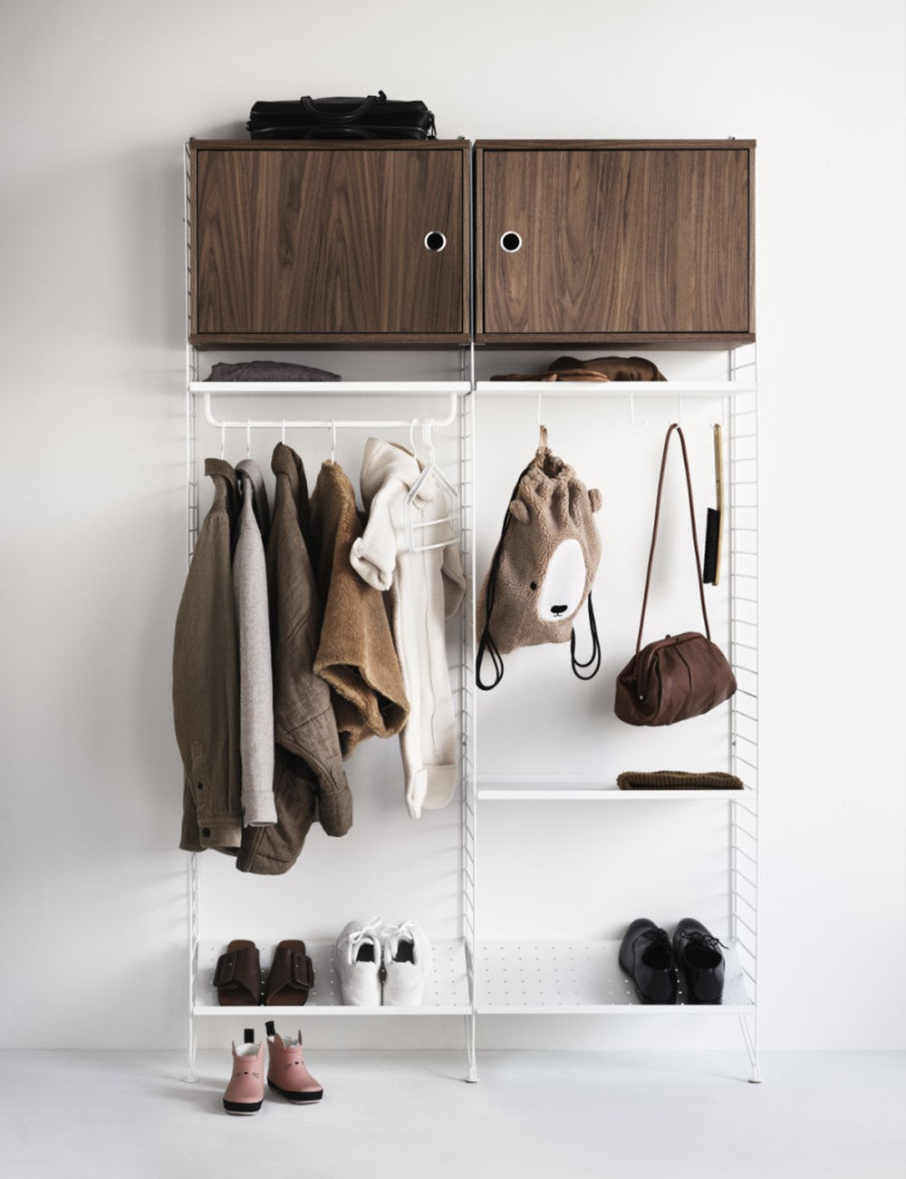 L'ensemble de crochets métalliques String élargit les possibilités de la série String System en offrant fonctionnalité et service.