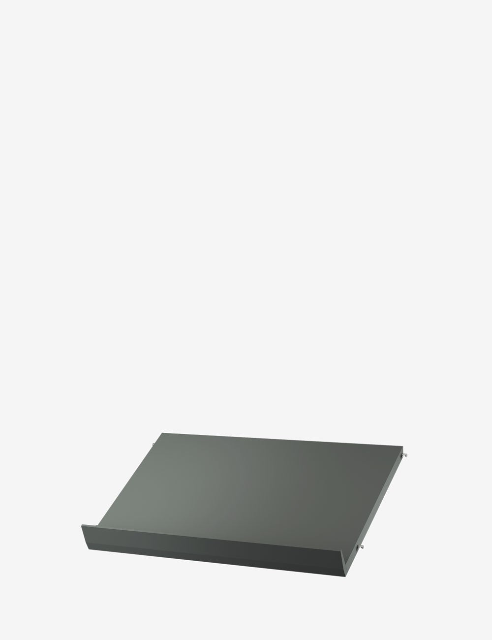 Le porte-revues est disponible en largeurs de 58 cm et 78 cm et s'adapte aux panneaux métalliques String System d'une profondeur de 30 cm.