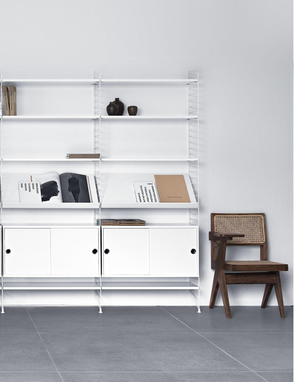 Le porte-revues String élargit les possibilités de la série String System en offrant fonctionnalité et service.