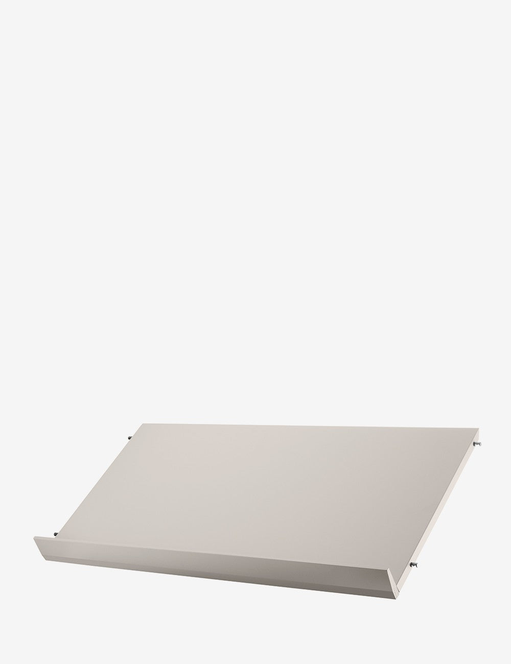 Le porte-revues est disponible en largeurs de 58 cm et 78 cm et s'adapte aux panneaux métalliques String System d'une profondeur de 30 cm.