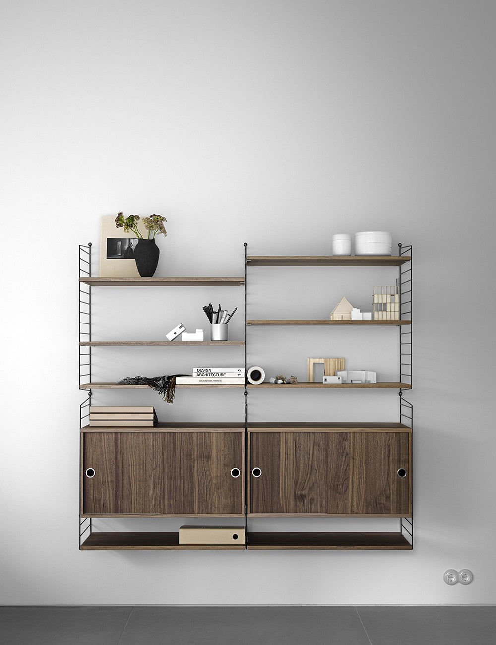 Algunas cosas se asocian tan fuertemente con un momento específico que en realidad terminan siendo atemporales. Esa es una forma de resumir la contribución de Nisse y Kajsa Strinning a la historia del diseño escandinavo. La editorial sueca Bonnier se dio cuenta que la mayoría de los hogares no estaban amueblados adecuadamente, prestando atención a las estanterías, lo que les dificultaba mucho vender libros. En 1949 anunciaron un concurso en el que pedían un diseño para un estante con algunos criterios. El estante tenía que ser asequible, fácil de enviar e, igualmente, fácil de montar. Naturalmente, String se convirtió en una solución muy común en los hogares suecos durante la década de 1950 y 1960. Durante varios años, la producción de String fue inexistente. No fue hasta el 2004 cuando la marca revivió con un nuevo concepto adaptado a las necesidades de hoy en día. Nisse Strinning contribuyo al renacimiento de su propia marca con un nuevo diseño llamado String Pocket que se convirtió inmediatamente en un éxito y sigue siendo uno de los productos estrella de la marca en la actualidad.