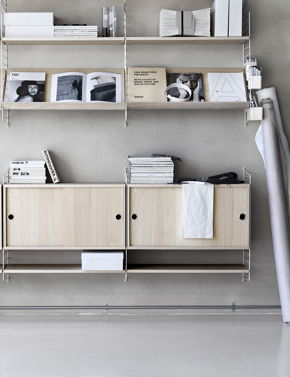 Algunas cosas se asocian tan fuertemente con un momento específico que en realidad terminan siendo atemporales. Esa es una forma de resumir la contribución de Nisse y Kajsa Strinning a la historia del diseño escandinavo. La editorial sueca Bonnier se dio cuenta que la mayoría de los hogares no estaban amueblados adecuadamente, prestando atención a las estanterías, lo que les dificultaba mucho vender libros. En 1949 anunciaron un concurso en el que pedían un diseño para un estante con algunos criterios. El estante tenía que ser asequible, fácil de enviar e, igualmente, fácil de montar. Naturalmente, String se convirtió en una solución muy común en los hogares suecos durante la década de 1950 y 1960. Durante varios años, la producción de String fue inexistente. No fue hasta el 2004 cuando la marca revivió con un nuevo concepto adaptado a las necesidades de hoy en día. Nisse Strinning contribuyo al renacimiento de su propia marca con un nuevo diseño llamado String Pocket que se convirtió inmediatamente en un éxito y sigue siendo uno de los productos estrella de la marca en la actualidad.