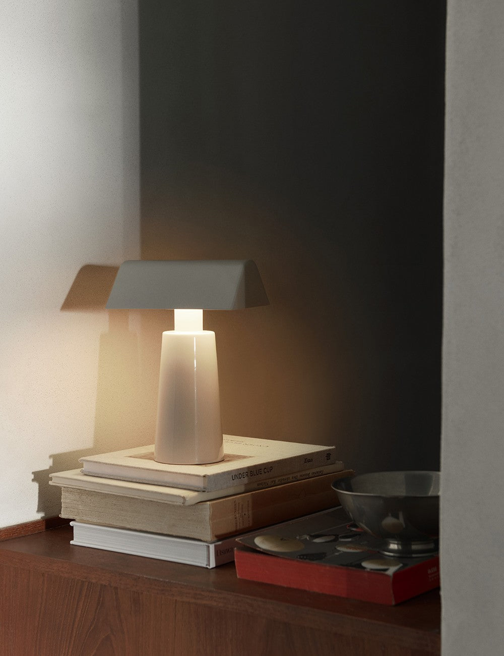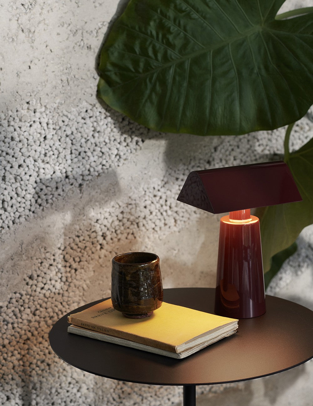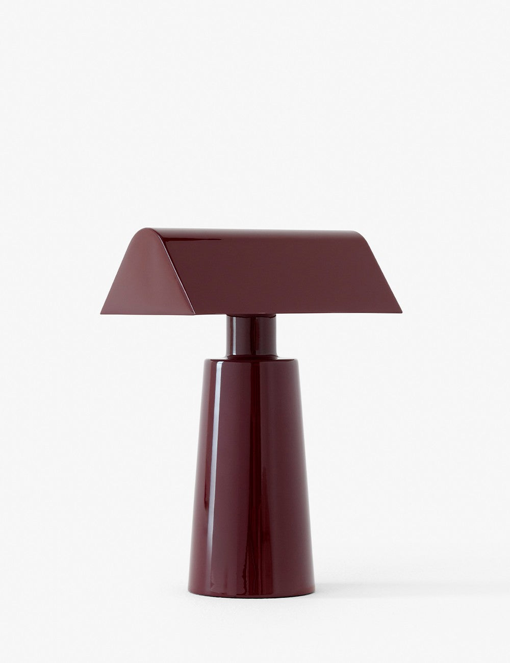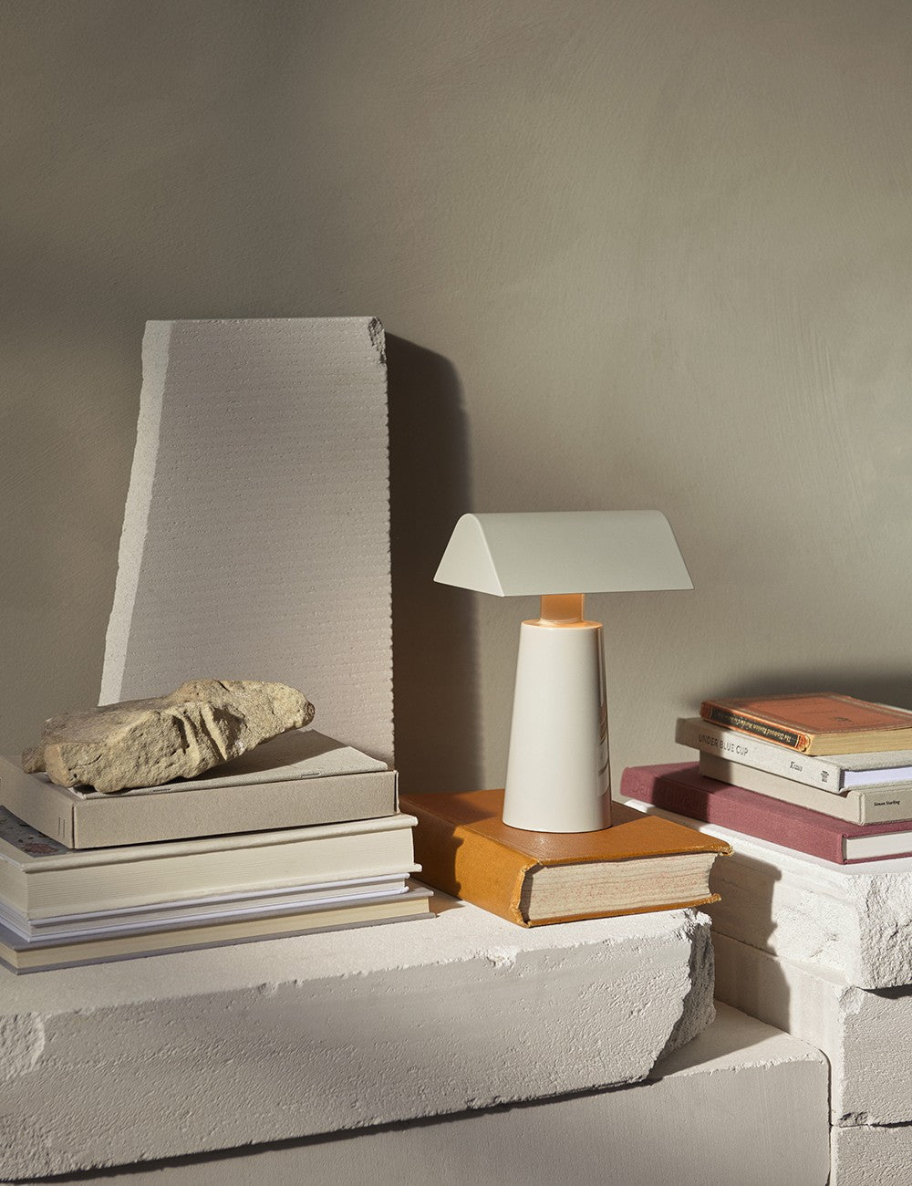 Caret, de Matteo Fogale pour &Tradition, réinvente les silhouettes linéaires des modèles verts classiques trouvés dans les bibliothèques historiques et connus sous le nom de « lampes de banquier » dans cette version portable élégante.