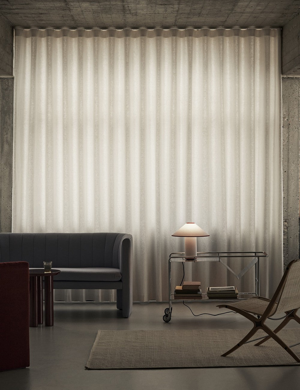 Collect est tissé selon un motif carré non directionnel lui conférant une tridimensionnalité, tandis que les couleurs neutres lui confèrent une esthétique sereine et élégante.