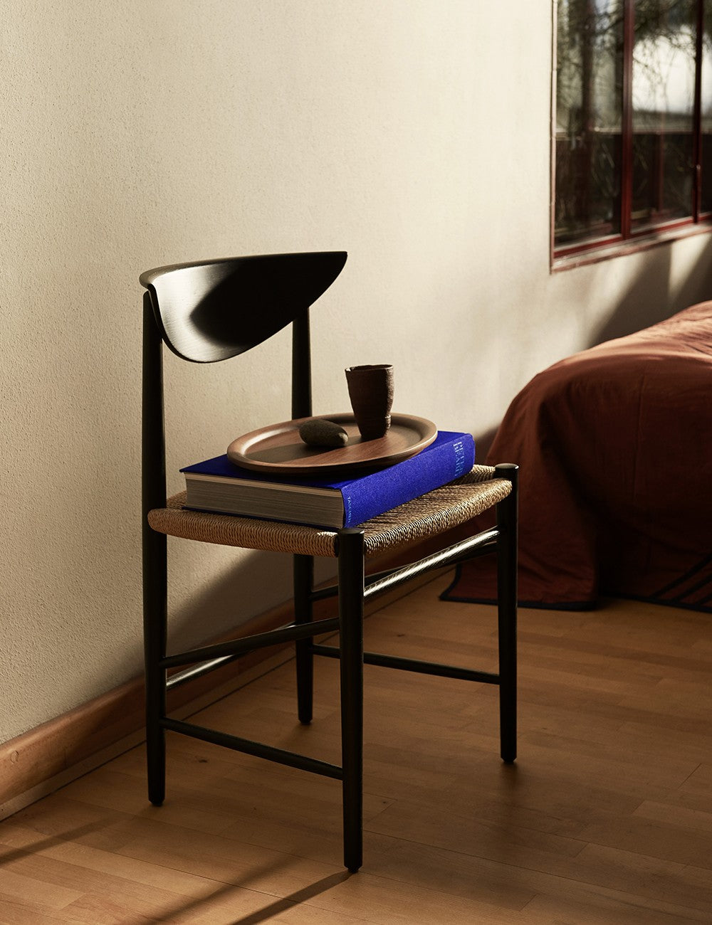Drawn est fabriqué en bois massif tourné et fraisé. L'assise est tressée à la main avec plus de 100 mètres de corde de papier naturel.