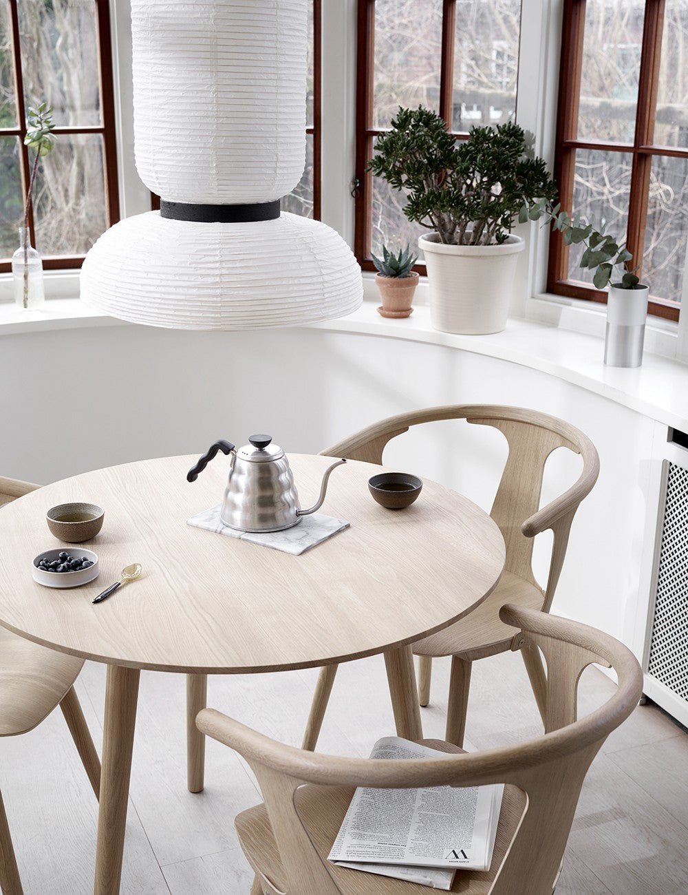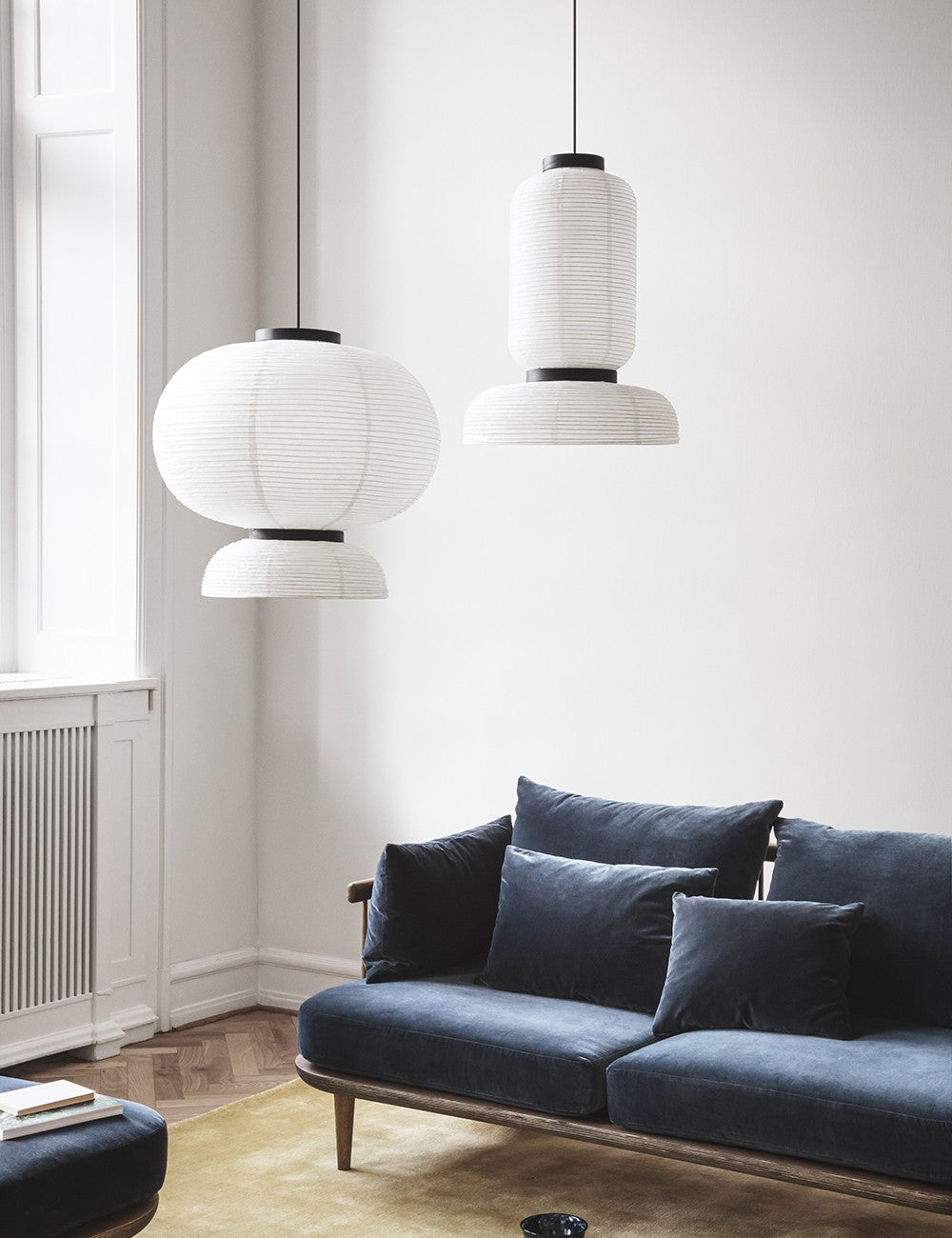 Conçu par Jaime Hayón pour &Tradition en 2015, Formakami comprend une série de lampes de table et de suspension inspirées de la lanterne en papier asiatique classique.