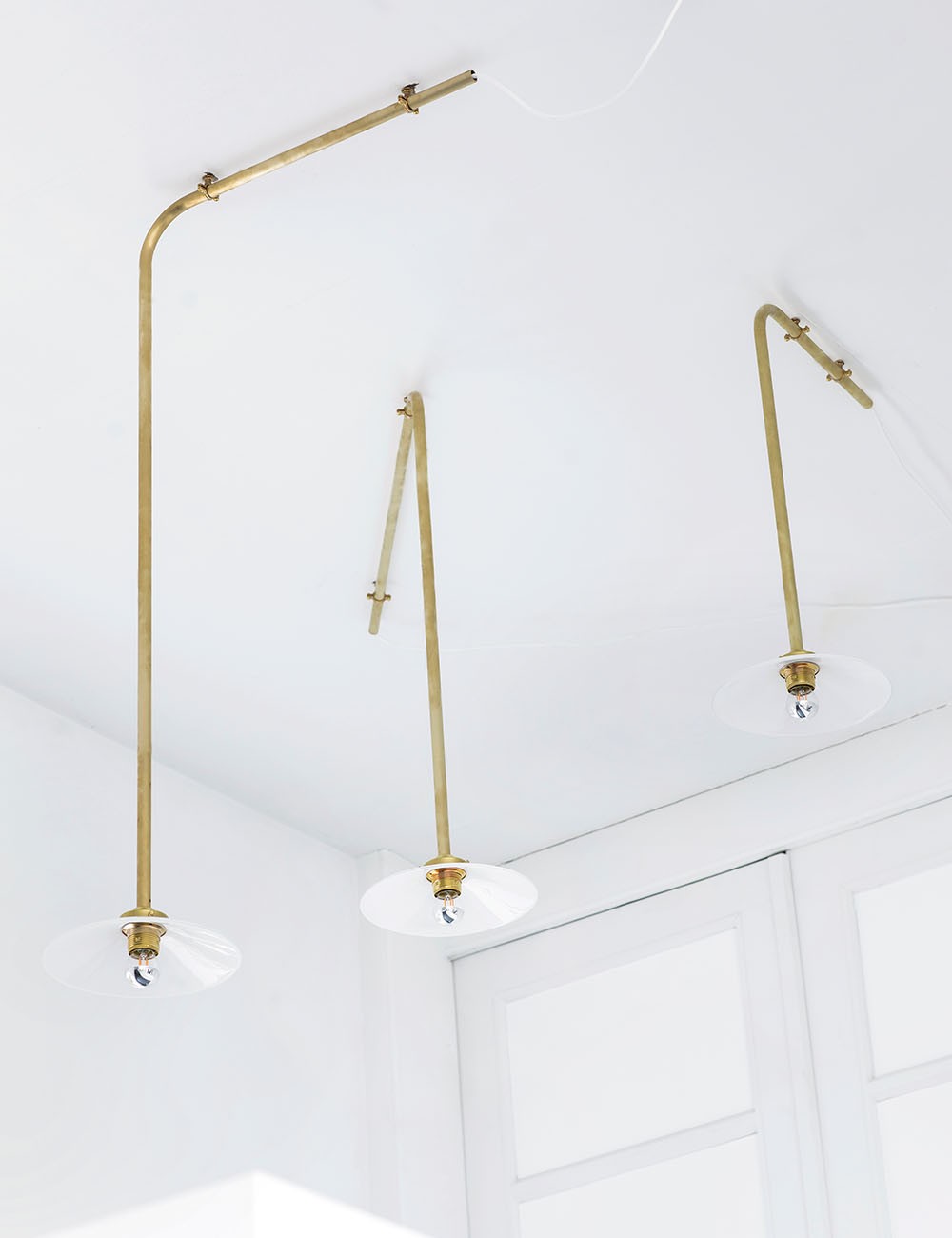 La série de lampes est née d'une nécessité pour les designers lorsqu'ils ont emménagé dans un ancien studio où ils n'avaient pas de luminaires de plafond, et de là est venue l'idée de créer un luminaire de plafond qui pourrait être branché au mur.