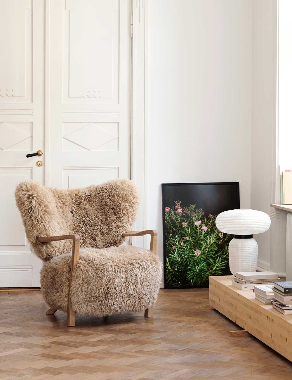 Le fauteuil Wulff, symbole du mouvement « moderne danois », fut initialement fabriqué au cours de la première moitié du XXe siècle dans un atelier danois traditionnel par l'ébéniste Jørgen Wolff. Sa silhouette architecturale, avec ses accoudoirs sculpturaux et son dossier en forme d'aile, reflète le savoir-faire et l'esprit avant-gardiste de l'époque. Réédité par &Tradition pour le public contemporain, le Wulff apporte une touche d'élégance et d'intemporalité à tout espace.