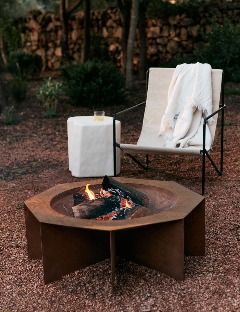 Otte Fire Pit traduce i principi architettonici di Utzon, ovvero semplicità, funzionalità e integrazione con la natura, in un raffinato elemento centrale per esterni.