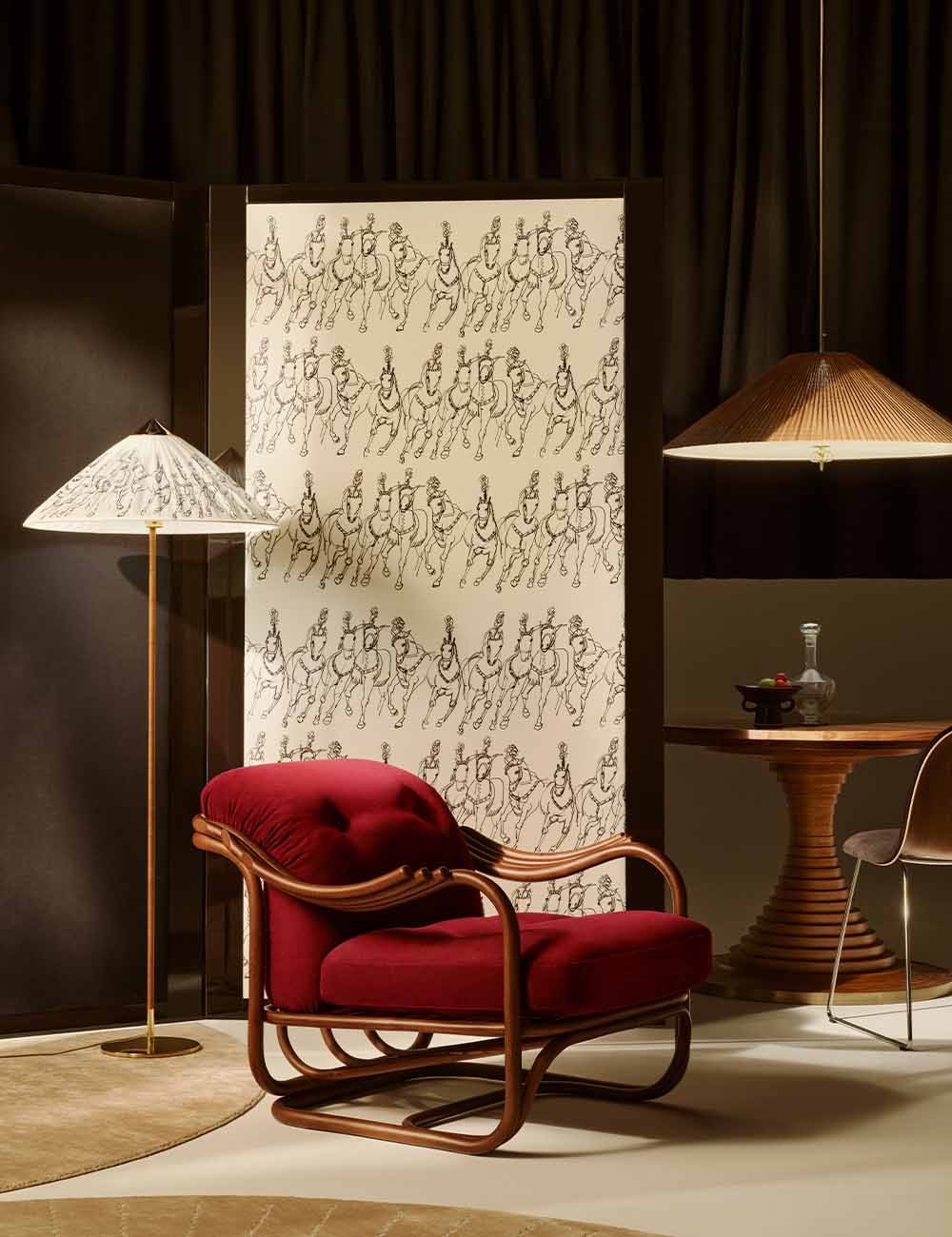 - Materiale : Impiallacciatura in noce, compensato di betulla, acciaio brunito color ottone, acciaio inossidabile.
