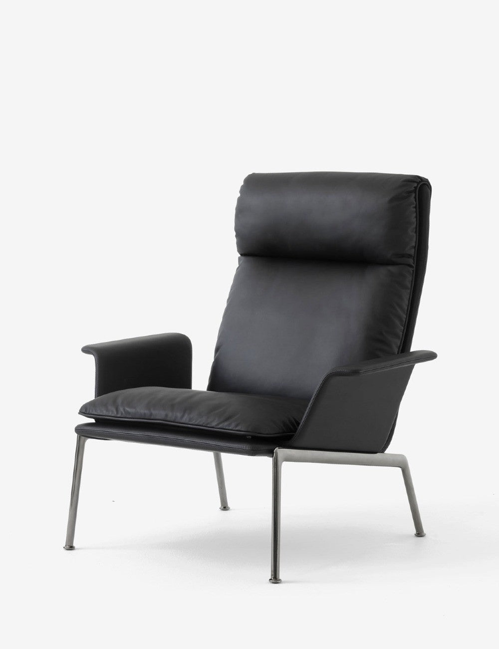 Composta da cinque modelli, la collezione Muno comprende poltrone con schienale alto e basso, con o senza braccioli, e pouf coordinati. La base in alluminio pressofuso di ogni modello è disponibile in cromo scuro o con una calda verniciatura a polvere nera.