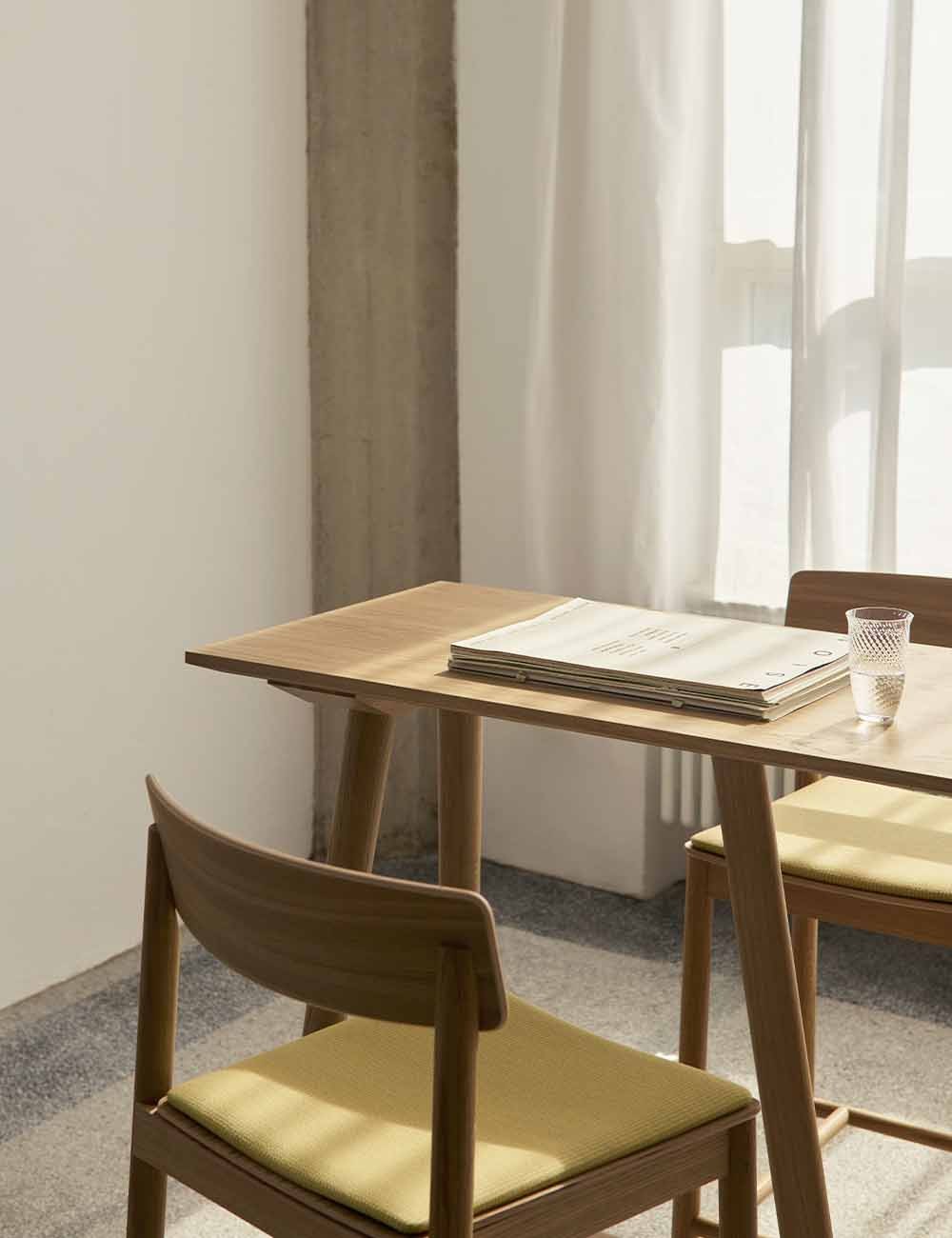 Seguendo i principi essenziali della famiglia In Between, il tavolo Counter si distingue per il suo design artigianale e il rispetto dei materiali organici.