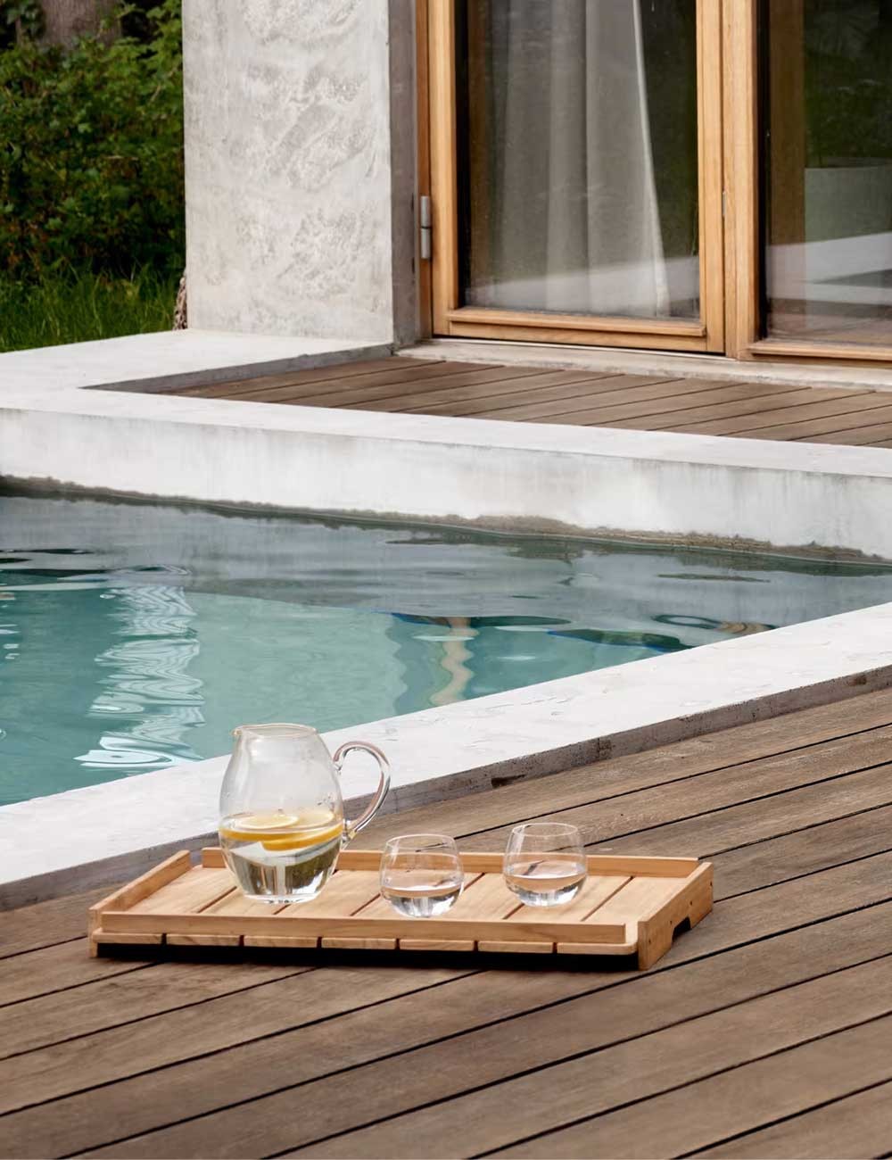 Il vassoio in legno BM1069 offre una combinazione unica di funzionalità e flessibilità. Può essere abbinato al poggiapiedi BM5768 per creare un elegante tavolo da esterno.