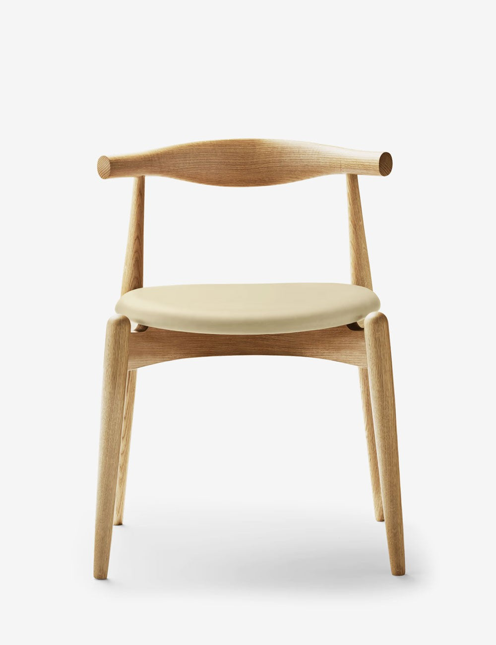 Lo schienale curvato a vapore della Elbow Chair, ricavato da un unico pezzo di legno massello, sostiene i gomiti e la parte bassa della schiena e consente di assumere diverse posizioni di seduta.