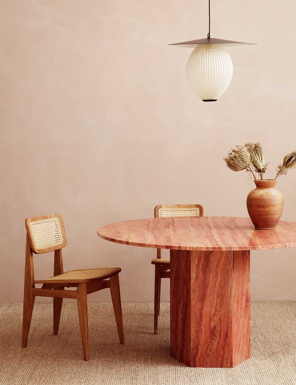 Epic, di GamFratesi per GUBI, è una serie di tavoli scultorei ispirati alle colonne greche e all'architettura romana.