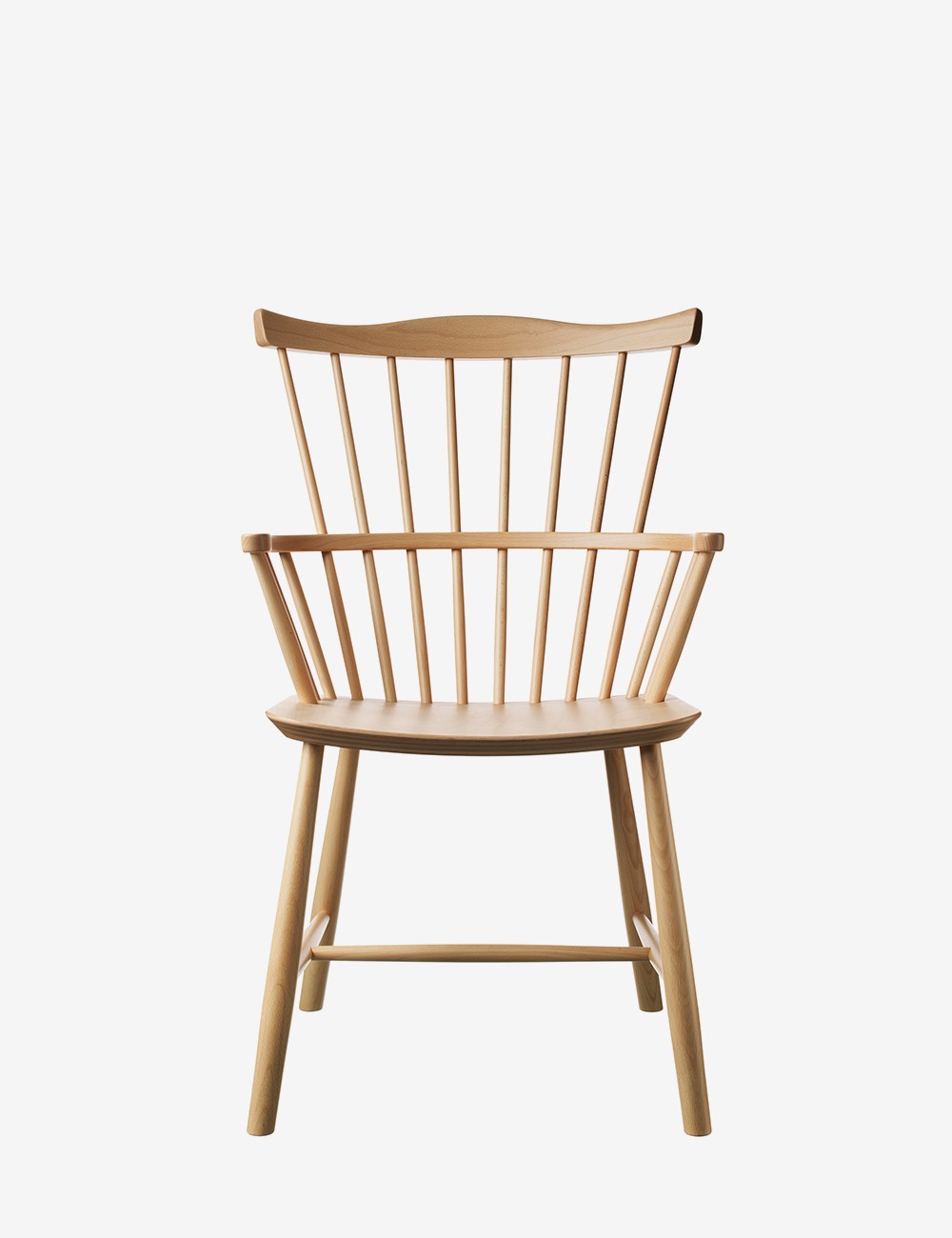 J52B reinterpreta la classica sedia Windsor inglese, dando vita a un pezzo senza tempo dal carattere nordico.
