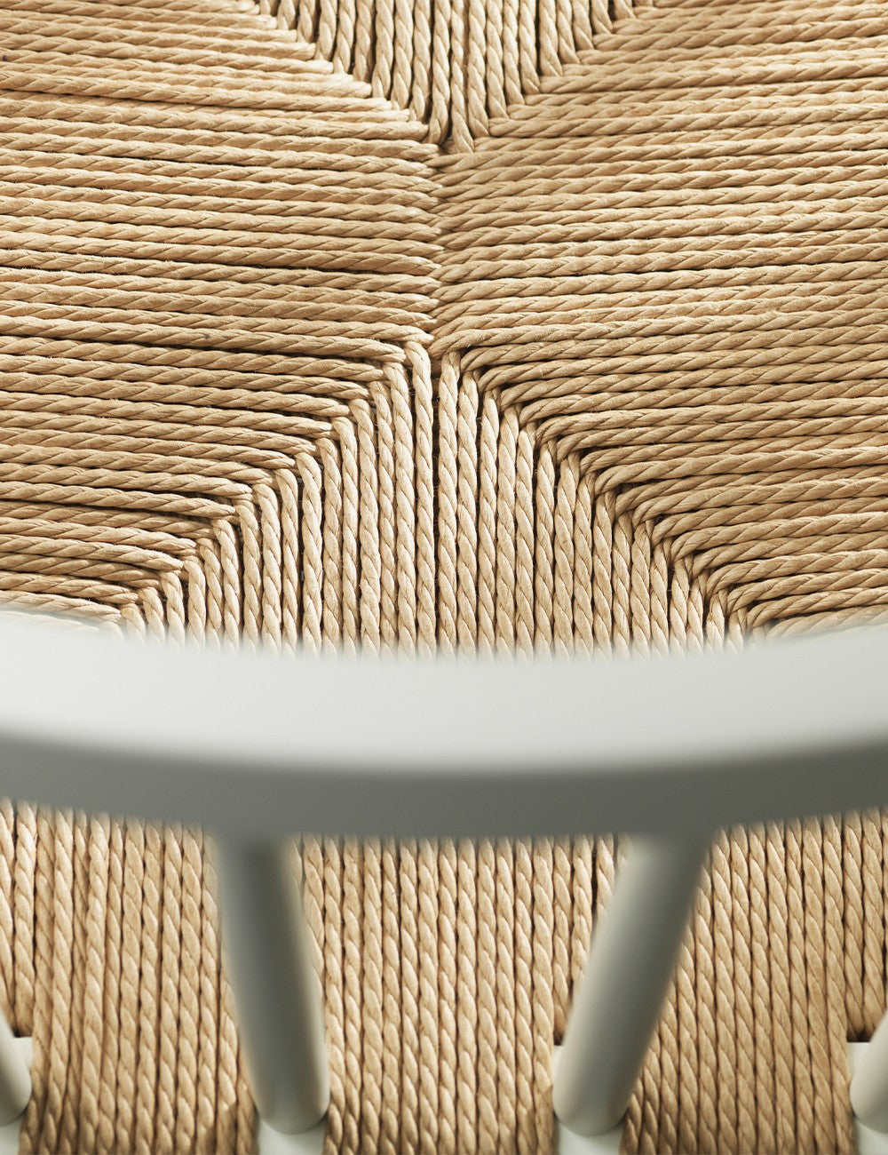 Questa sedia in legno massello con seduta in filo di carta è una delle icone del design danese di metà secolo.