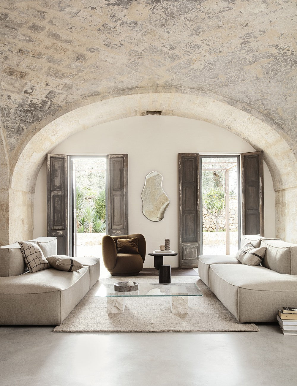 Catena riflette questa idea nelle sue curve e cuciture morbide, creando un divano dall'estetica organica e senza tempo.