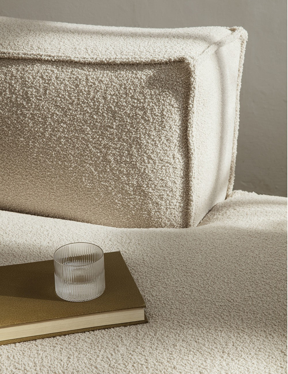 Questa versione del divano Catena è rivestita in un lussuoso e morbido bouclé, in cui la miscela di lana e cotone crea un tessuto dall'aspetto lussuoso.