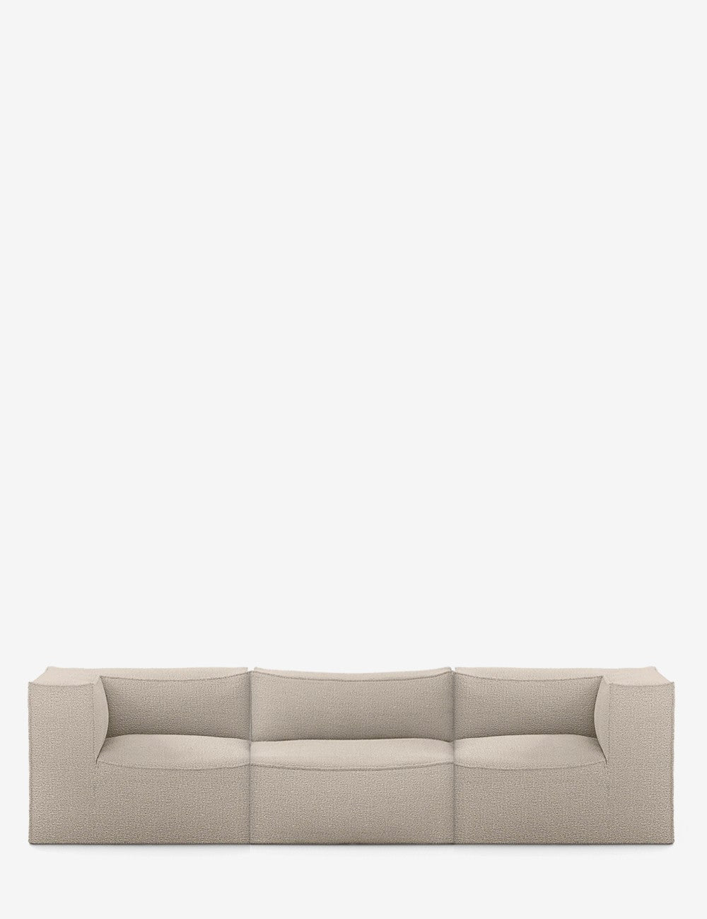 Questa versione del divano Catena è rivestita in un lussuoso e morbido bouclé, in cui la miscela di lana e cotone crea un tessuto dall'aspetto lussuoso.