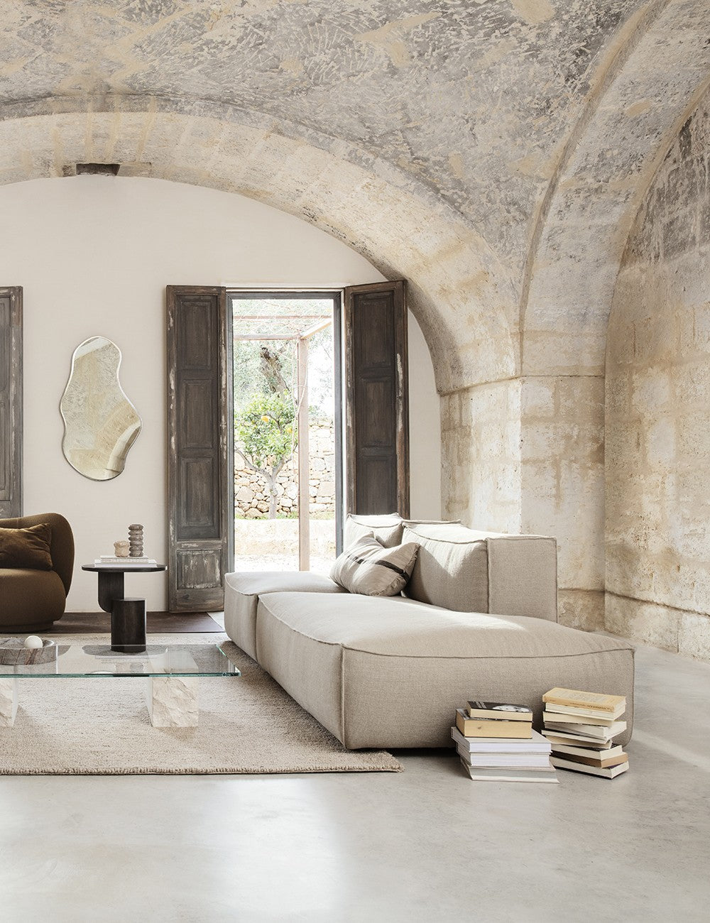 Catena riflette questa idea nelle sue curve e cuciture morbide, creando un divano dall'estetica organica e senza tempo.