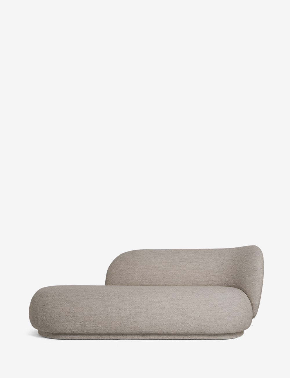 Questa versione del divano Rico è rivestita in un lussuoso e morbido bouclé, in cui la miscela visibile di diverse tonalità di filato crea un tessuto dall'aspetto lussuoso.